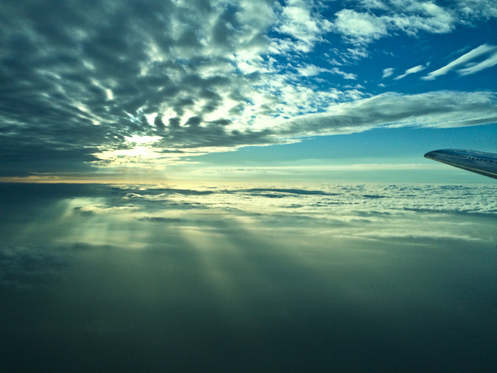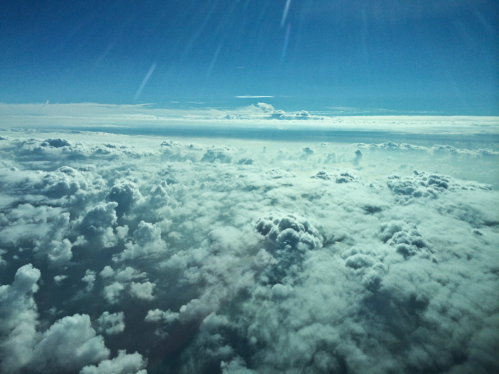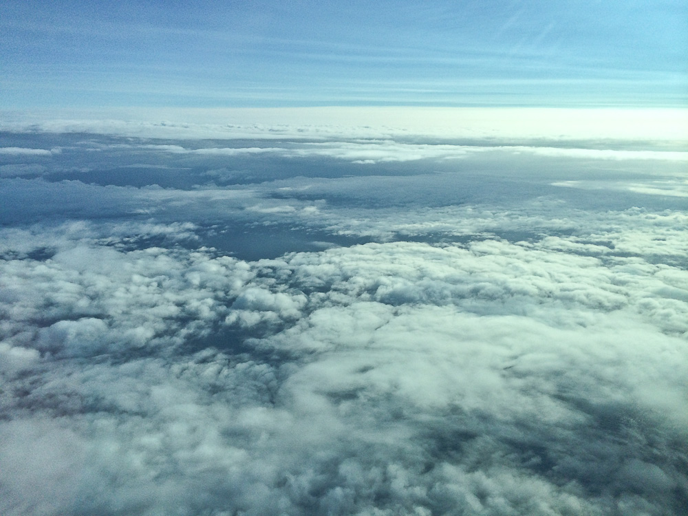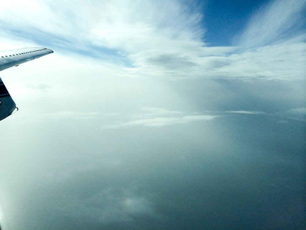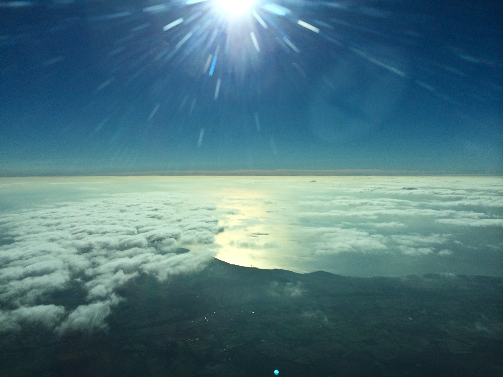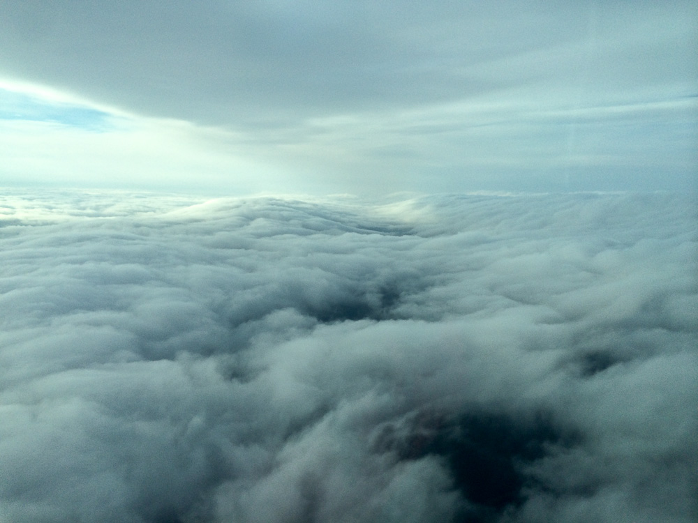 Почти всю дорогу до Шотландии летим над облаками: