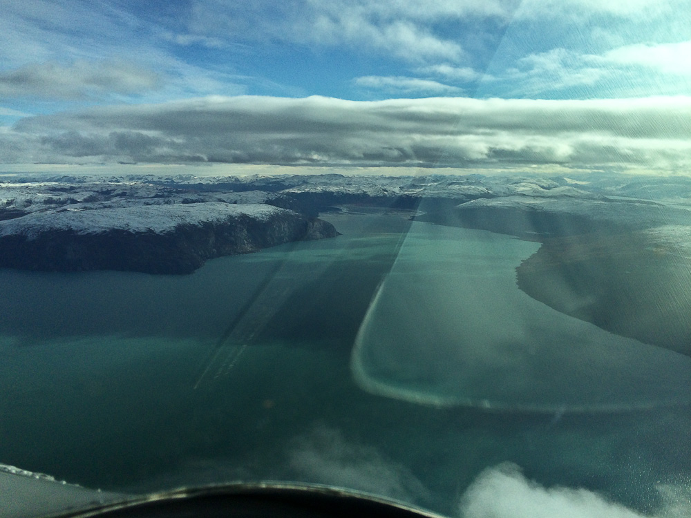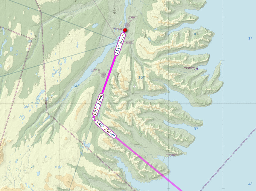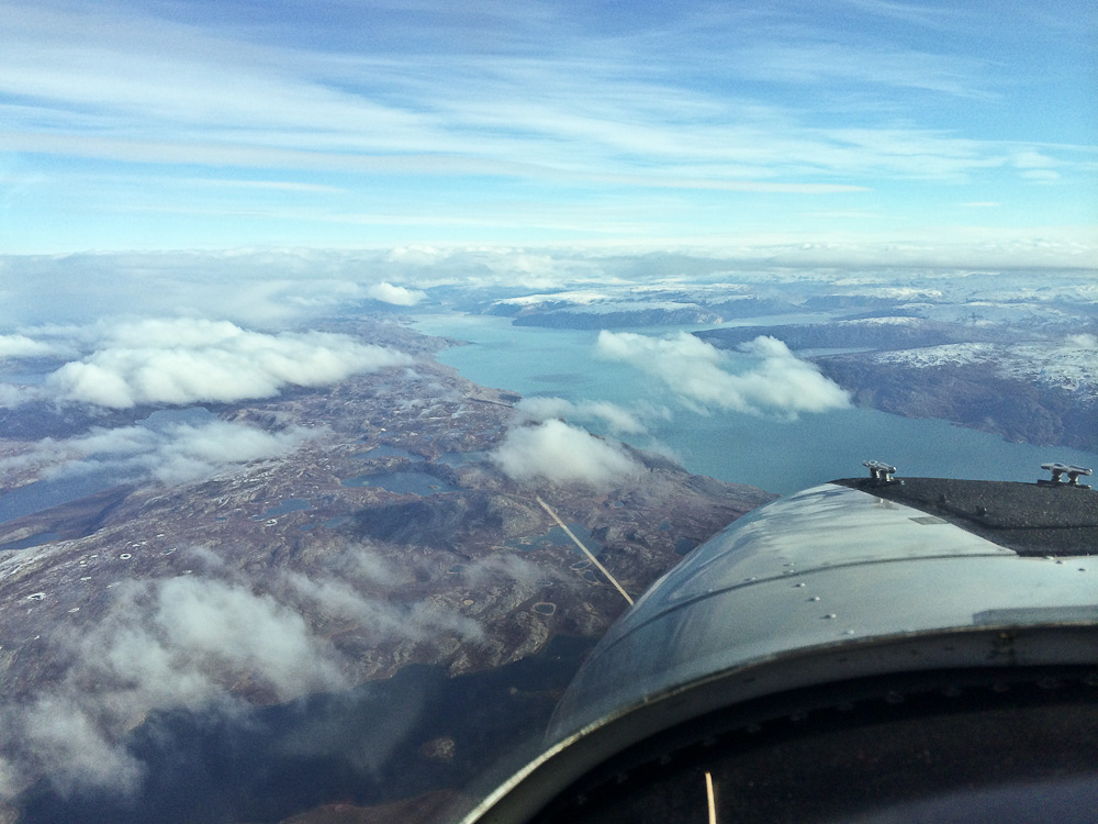 Если лететь из Гус Бэй (Goose Bay, CYYR, крупный аэропорт на востоке Канады, часто используемый для трансатлантических перелётов) напрямую в Нарсарсуак (Narsarsuaq, BGBW, юг Гренландии), а не через «севера», то можно сэкономить 1600 морских миль. Но этот маршрут имеет свои недостатки – очень длинный отрезок над океаном, необходимость иметь КВ-радиостанцию, а потом – более высокая для нас трасса через Гренландию до её восточного аэропорта Кулусук (Kulusuk, BGKK). По всем трём параметрам мы не проходили. Хотя у нас ещё была надежда на отличные летные качества самолёта, и мы не исключали этот вариант. В итоге же пошли более долгим, но более безопасным северным путём.