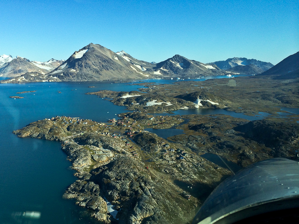 На острове чуть правее центра фото, слева под горой виднеется наша цель – грунтовая полоса аэродрома Кулусук.