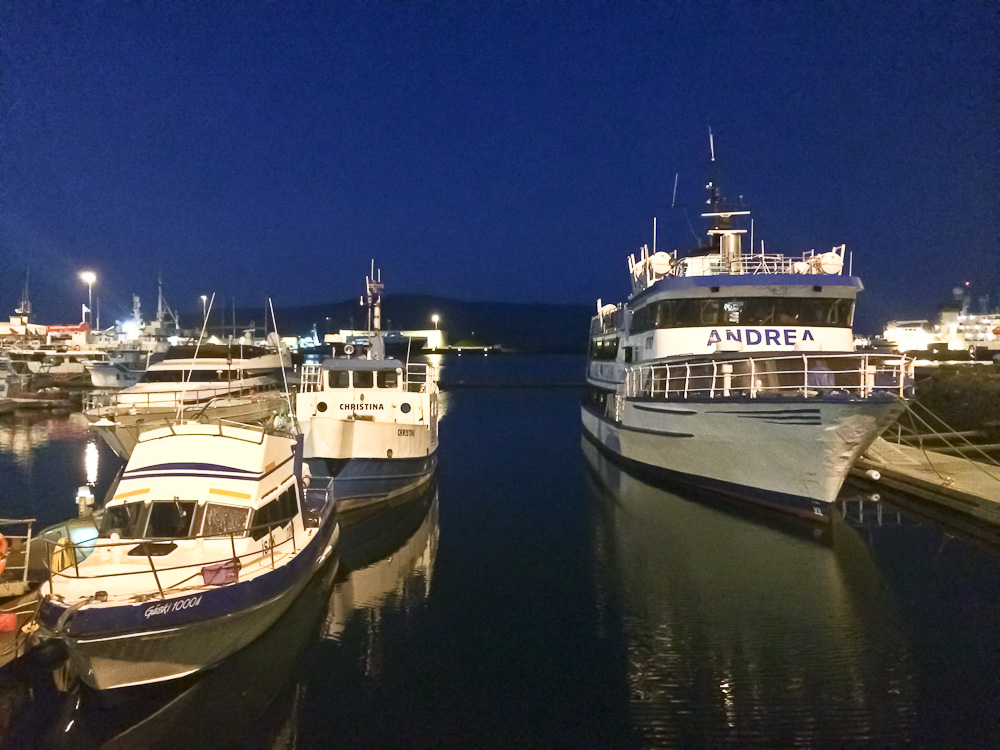 Нас встретил старый знакомый Бориса, передал посылку с форсункой и покатал по городу. Перед сном прогулка в порт и местная еда в одном из многочисленных заведений там. Говорят, в последние несколько лет в Исландии огромный наплыв туристов. Местная крона сильно упала после кризиса 2008 года, что сыграло на руку туристам.