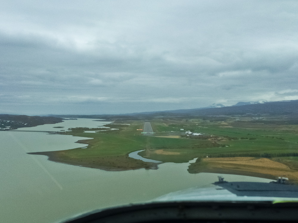 Тем временем пролетаем в зоне аэропорта Акурейки (Akureyki, BIAR), узнаём у них погоду. В целом неплохо – можно рассчитывать на него как на запасной. Узнаём погоду и в аэропорту назначения – там нижний край в районе 3000 футов, что очень неплохо. Но и не просто, т.к. там ущелье-долина, и минимальное безопасные высоты 5000-6000 футов. И тут я вспоминаю про американское «pop-up IFR» и запрашиваю у Исландии-Контроль IFR-план напрямую на Эгильстадир на эшелоне FL70. Они немного зависают, потом дают 90-ый эшелон из-за гор. Пришлось объяснять, что вверху обледенение, а хребет мы уже пролетели, поэтому и 70-й будет безопасным. Убедил. Летим час полностью в облаках. Выполняю приборный заход, оказываемся под облаками, садимся.