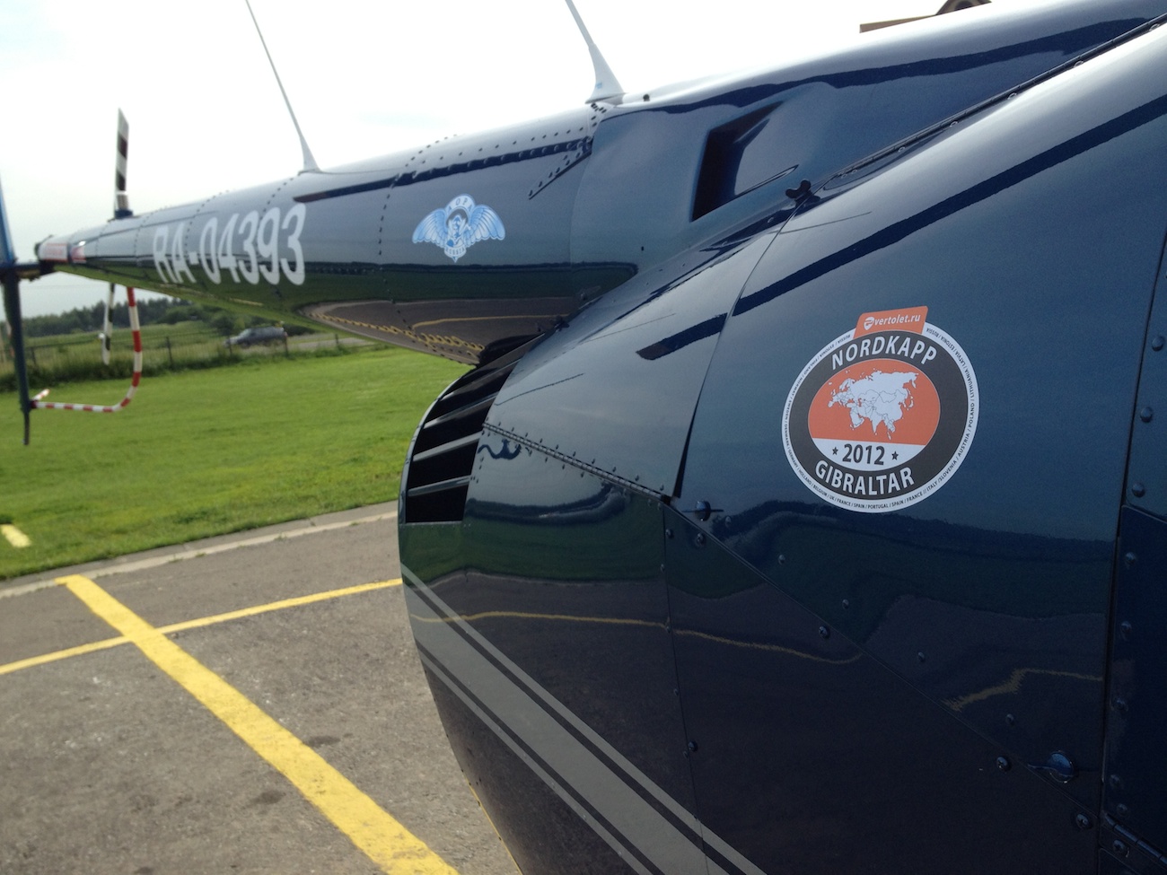 Дополнительно была сделана наклейка о самом путешествии. К слову она просуществовала всего 2 часа - ее верхний слой был безвозвратно смыт дождем. Все оставшееся путешествие я периодически пытался ликвидировать последствия этой наклейки. Безуспешно. Подоснова была намертво прилеплена к вертолету....