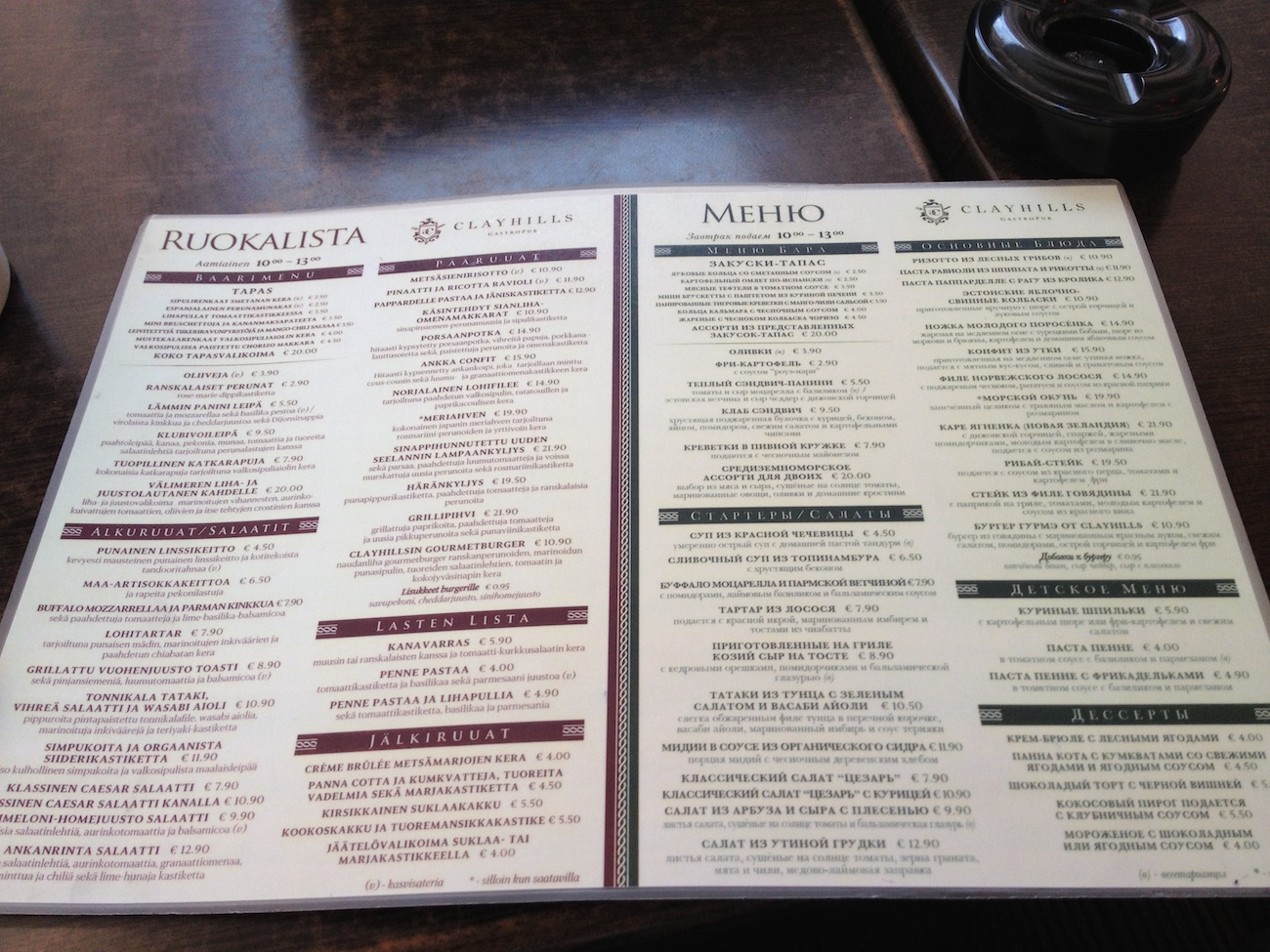 Далее мы нашли неплохой гастропаб - Клэйхиллз. Но перед тем как доверить свои желудки их шеф повару мы внимательно изучили меню.