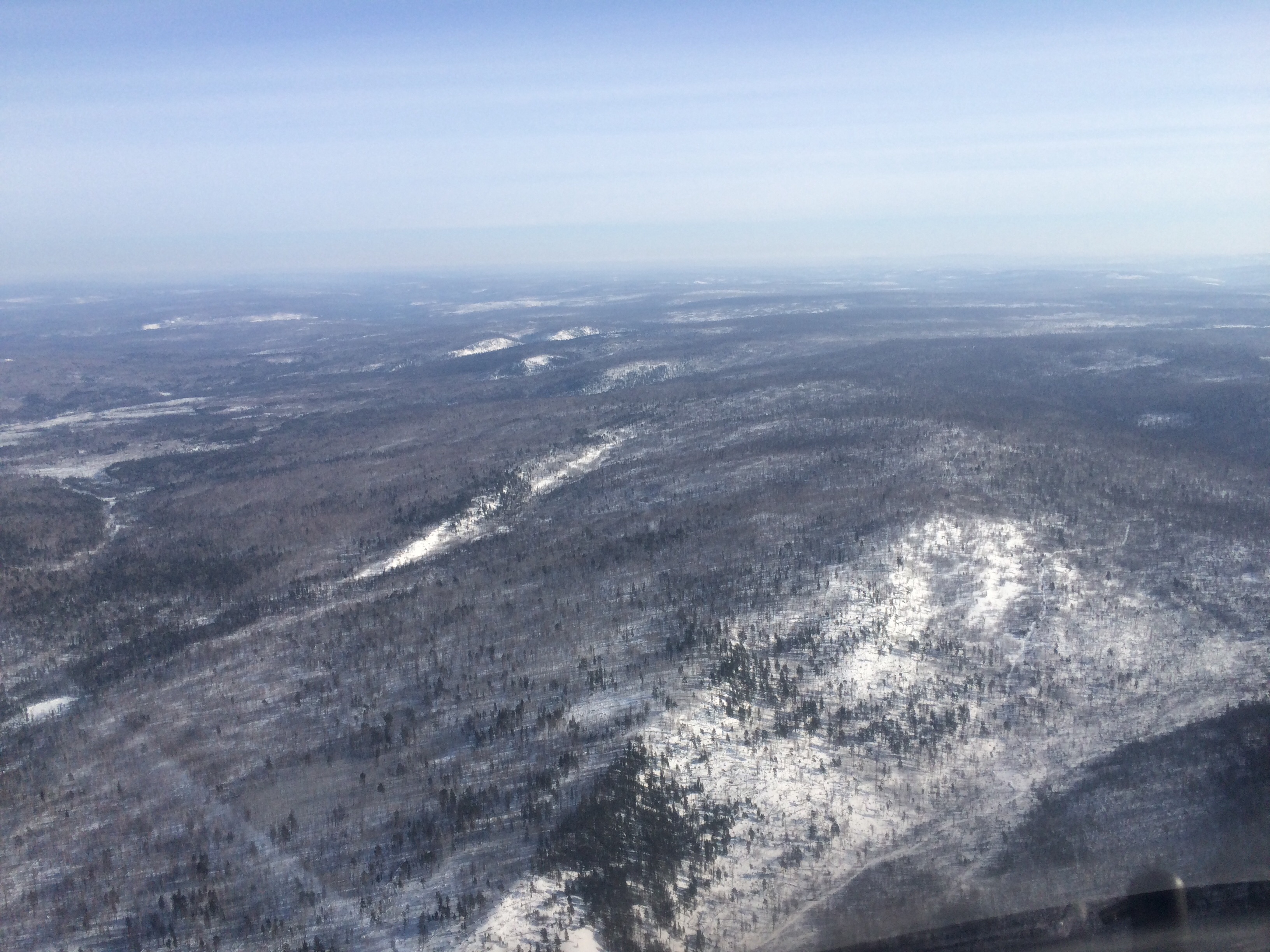 Сняв съемку успешного старта, ждём машину ПДСА в районе вертодрома. Садим оператора , все остальные на борту. Вперёд. Ох уж эти телевизионщики. Мы неправильно сидим у нас оператор возле окна а он должен быть с другой стороны, Регина посредине, а она должна возле окна. Тихо! Сейчас отлетит на 10 км от аэродрома сядем и поменяетесь. Ну все устаканилось, пошли съемки не понятно чего. Мы отключив салон от своих переговоров, переговариваемся, Погода пока отличная солнце. На улице снег, лес, зимний пейзаж с воздуха своеобразен. С земли это смотрится интересней. Прибакайлье имеет разные места, параллельные берегу долины в которые сбегают ручейки и образующие небольшие речки, сопки которые тянуться к берегу озера, и чем ближе к берегу тем они выше. Как будто озеро не хочет что б его видели из далека. Подойди ближе и посмотри и ты узнаешь какой я Байкал.