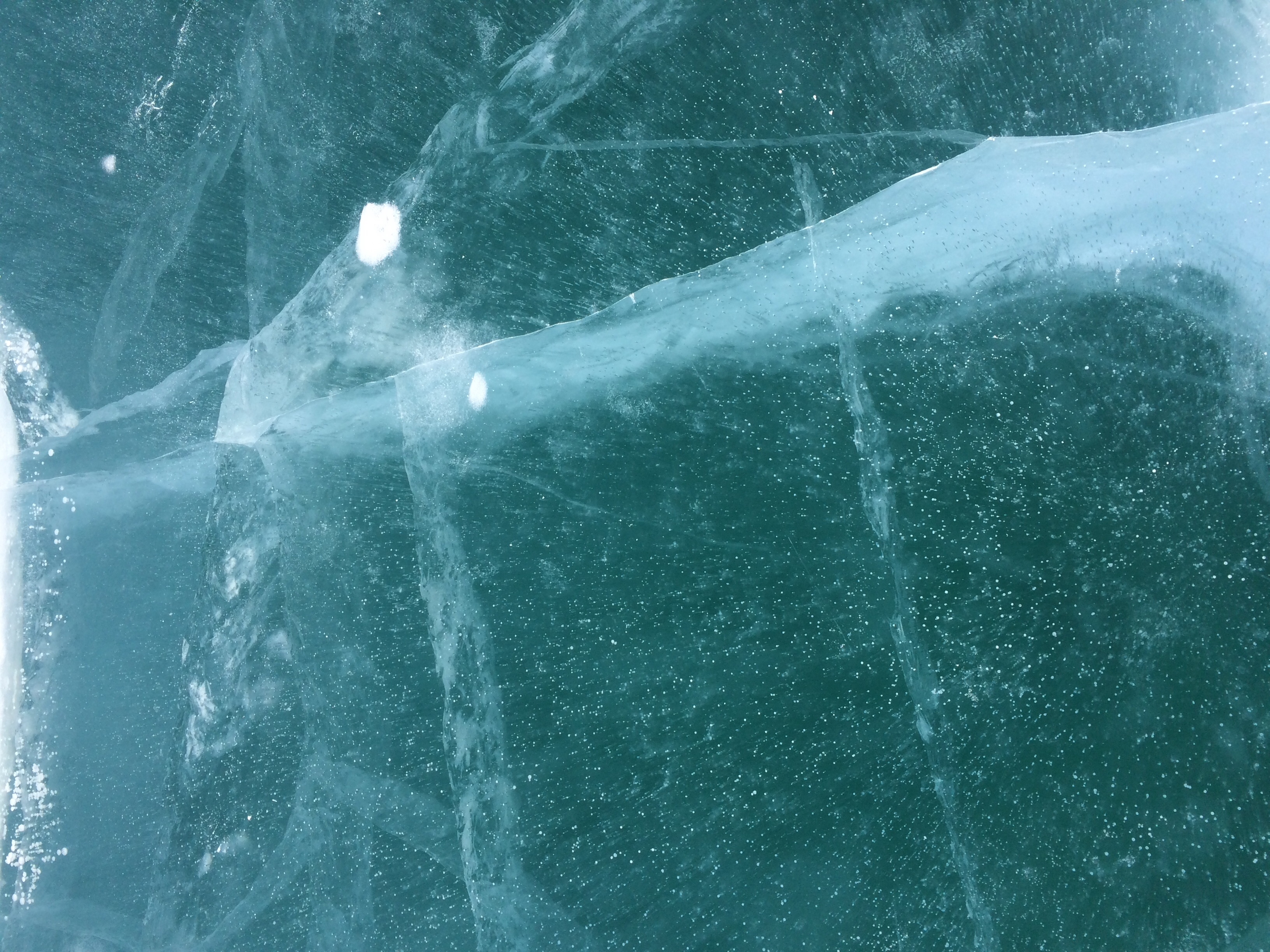 Отключаем салон, а то оглохнем. Идём по большому Байкалу вдоль берега. Вид охрененый, мы сами разинув рот пялимся в лобовые стекла и нам пофиг на съёмки. Синий лёд, снег, скалы. Встаём в круг и смотрим что нам самим интересно, оператор снимает то что ему показывают а не то что хочет. Даже без Интерроса слышно как салон брызгая слюной кричит во все горло.