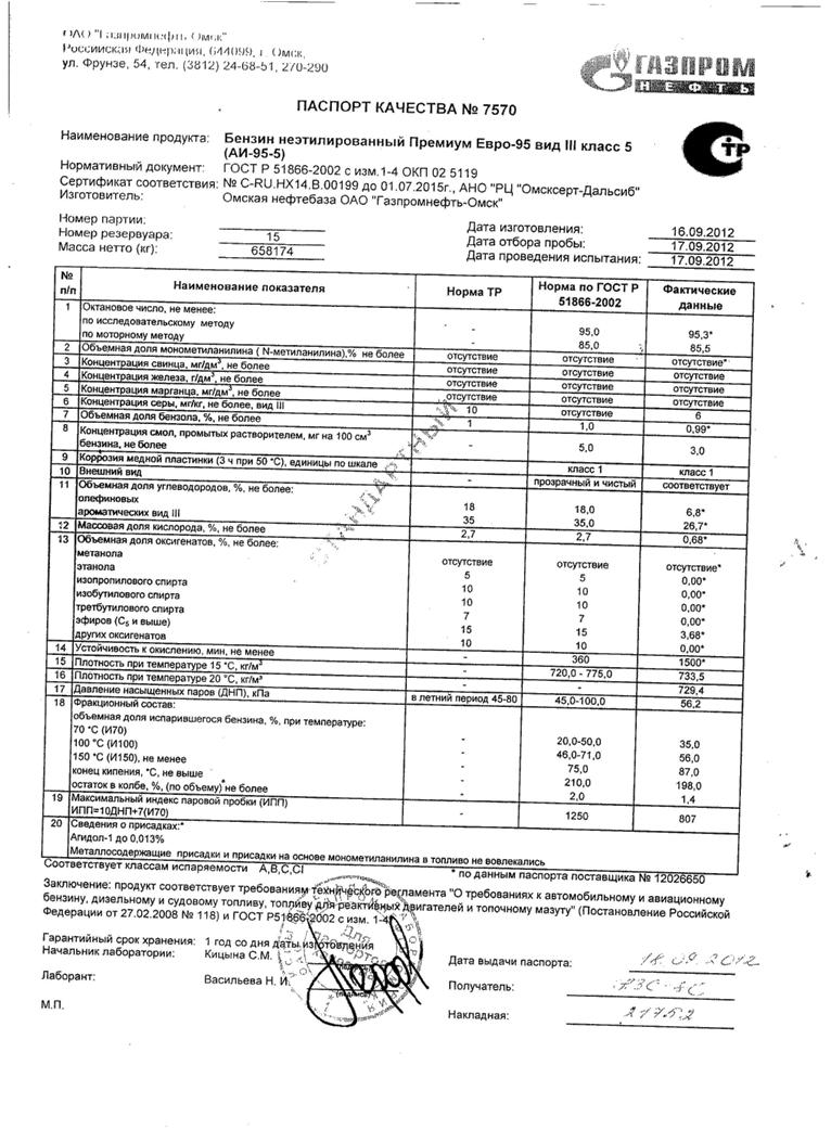 оказалось, у газпрома на 98 бензине, октановое число 89,7 по моторному методу.