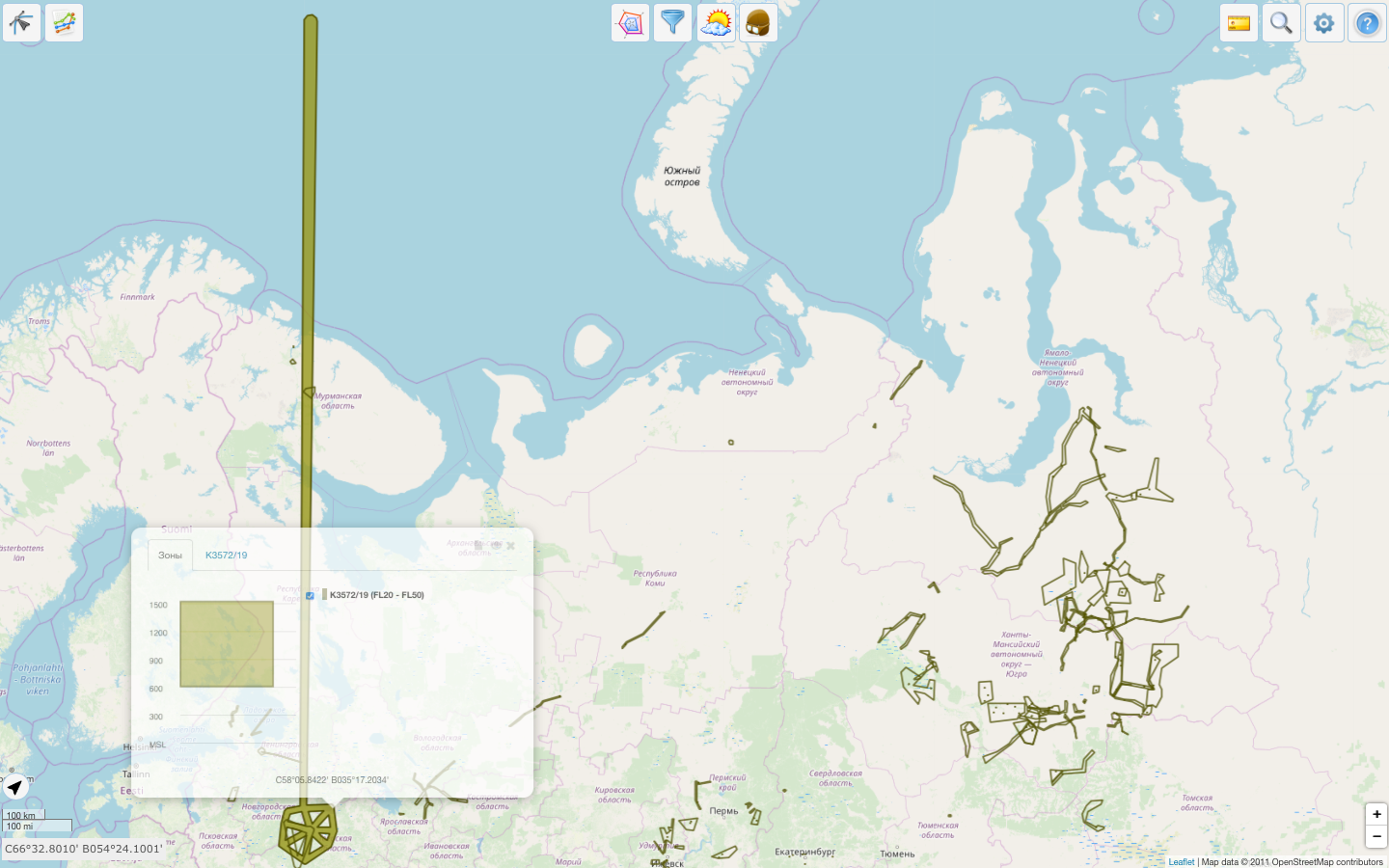 Зона ограничения по NOTAM на почти 2000 км протянулась, от Тверской обл до Баренцева моря.