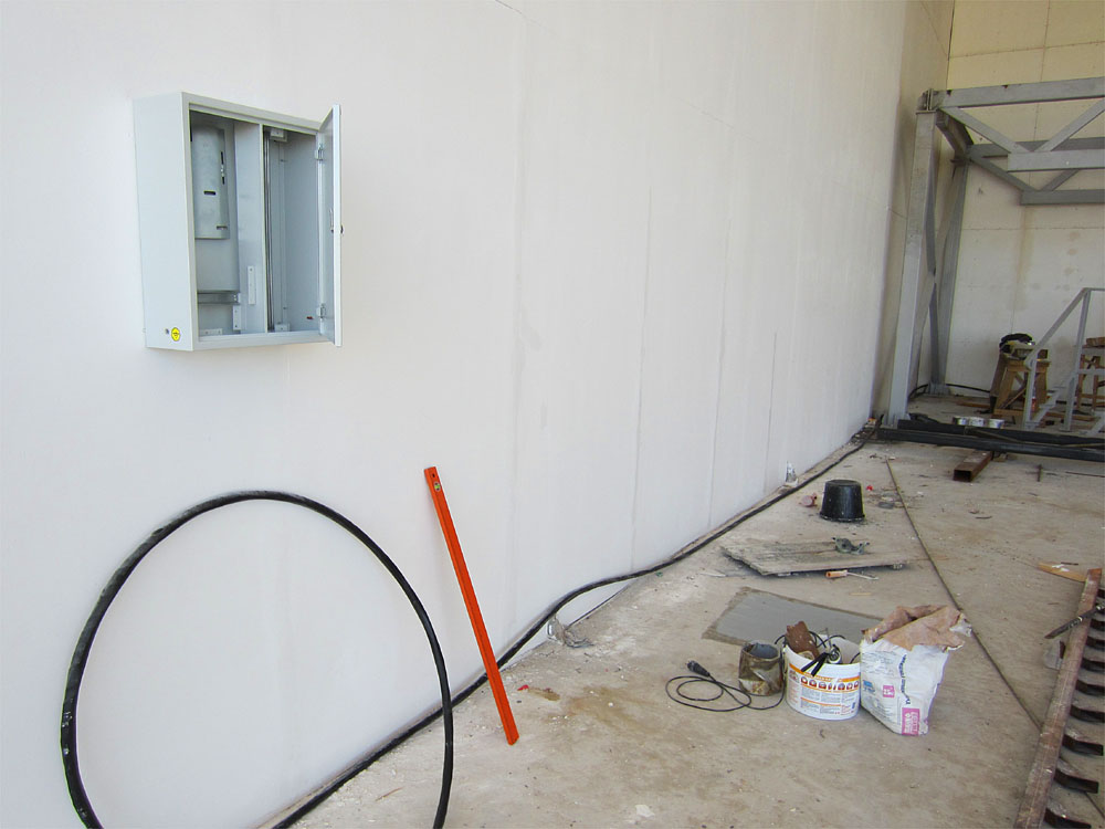 Уже по капитальному, от ближайшего распределительного щитка в ангар проложен силовой электрокабель. Начался монтаж внутреннего электрощита и укладка кабеля в кабель-канал. Осталось все смонтировать, установить счетчик и порядка с электроэнергией станет больше.