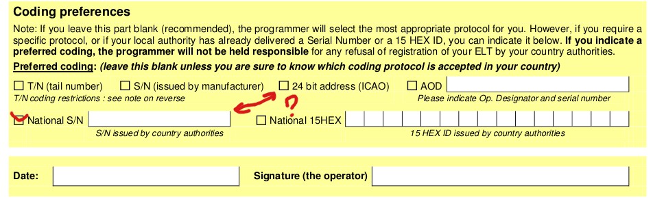 По-моему, нет. Та часть что заполняет человек программирующий маяк подписана "Part to be completed by authorized programmer after programming" и обведена синеньким. А блок "Coding Preferences" для заполнения как раз клиентом. И там написано - "не знаете, оставьте пустым".Technolog писал(а):Там не надо ни чего заполнять, это поле заполняет тот кто программирует. Обратите внимание что, если в комплектации вместе с маяком установлен донгл, то программируется только донгл.