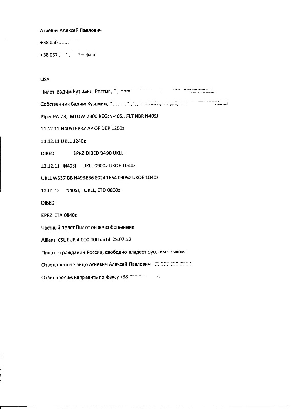 1.1. Для выполнения в/из Украину нерегулярных (чартерных) полетов эксплуатант присылает в Госавиаадминистрацию заявку на английском или на русском языке