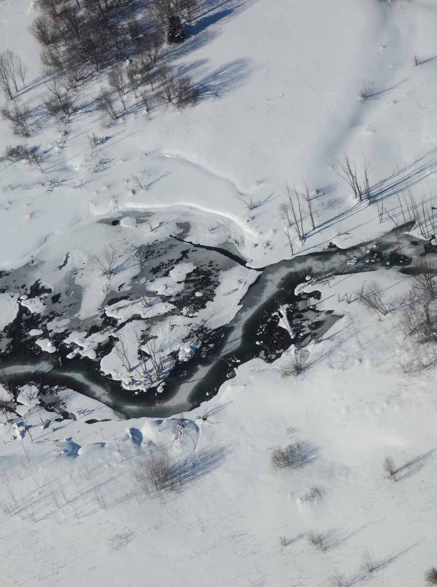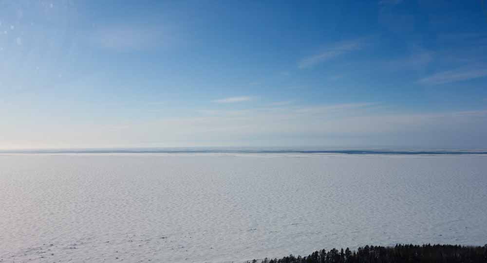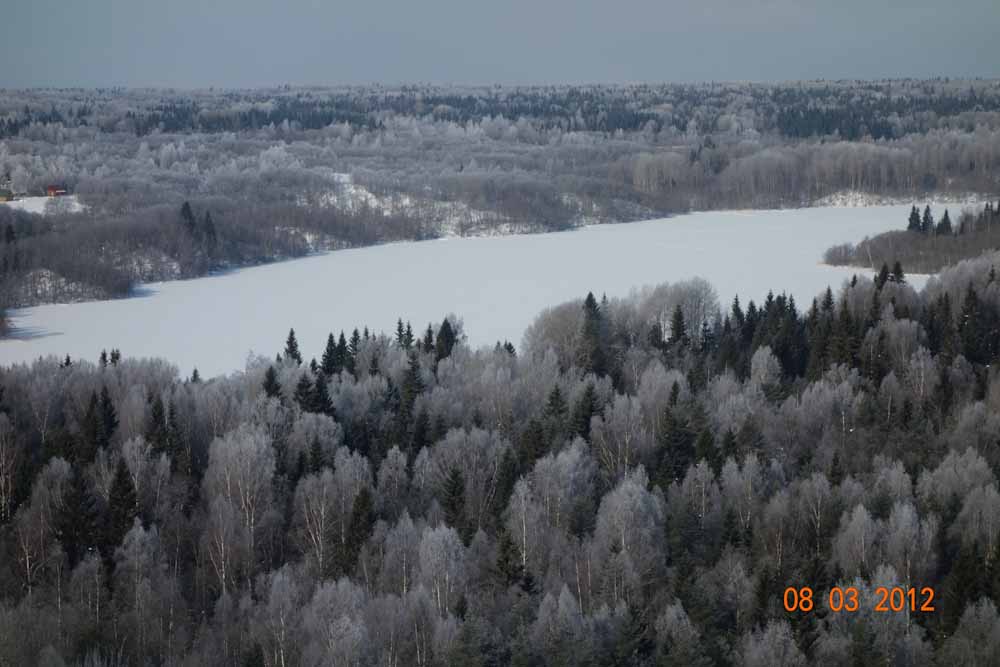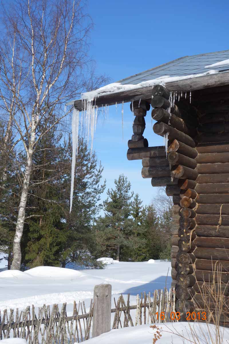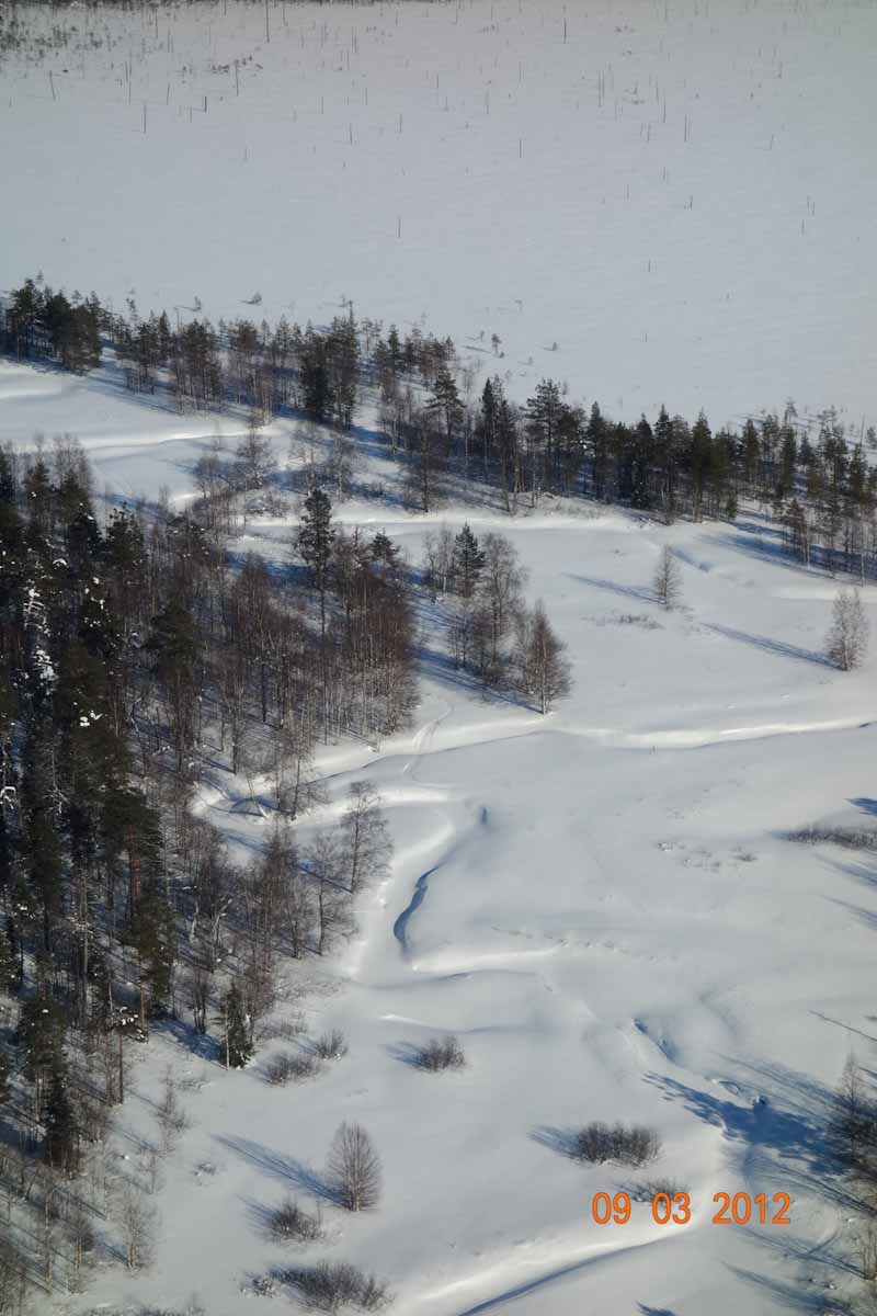 Расставались со всеми как старые друзья, отправились в обратный путь утром 14 числа, все было достаточно терпимо с погодой, топлива до Рыбреки было в обрез даже с двумя канистрами на борту, так как встречный ветер был всю дорогу в лоб 20-25 узлов... Срезали, где могли, над Белым морем, шли километров 10-15 от берега, все равно неприятно- полуприборный полет, высоту держишь по приборам, солнца не было и все сливалось, попадались снежные заряды. Видимость опять была не очень хорошей - 2-3 км, местами хуже. До Онежского озера - пустынные места! Редчайшие деревни, из растительности - только елки и редкие березки. Подлетая к Онежскому озеру, понимаешь, что это уже цивилизация и густонаселенное место, часто появлются следы животных. На берегу Белого моря следов животных очень мало, никто не хочет питаться елками. Пришлось из-за сильного встречного ветра заправиться на, чудом появившейся, лесной дороге недалеко от берега Онежского озера. Приняли решение лететь опять прямо через озеро, погода позволяла, при подлете к озеру распогодилось и светило солнце. Дима нас заправил и пригласил прилетать еще, нас и всех, кому нужно дозаправиться в этих местах.На волков в сугробах смотреть не пошли, слопали сухой паек, приготовленный нам Мариной Продан и замечательной Леной, прямо не выходя из вертолета и полетели дальше- в Мандроги, самобытную деревню на берегу реки Свирь между Ладожским и Онежским озерами. С удовольствием смотрели на деревни на берегу Свири - мы не одни!