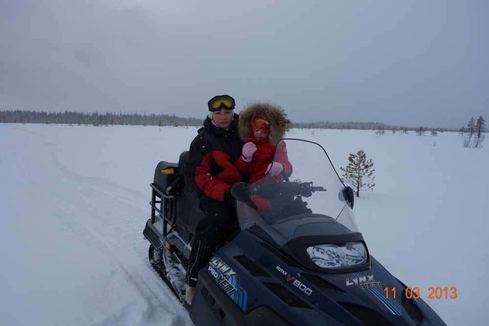 По вечерам с удовольствием гоняли на снегоходах, часа по полтора - Нюся была в восторге! Очень трогательно было, когда в середине пути Олег доставал термос, бутерброды и мы с удовольствием уминали все это среди белой красоты и солнца!