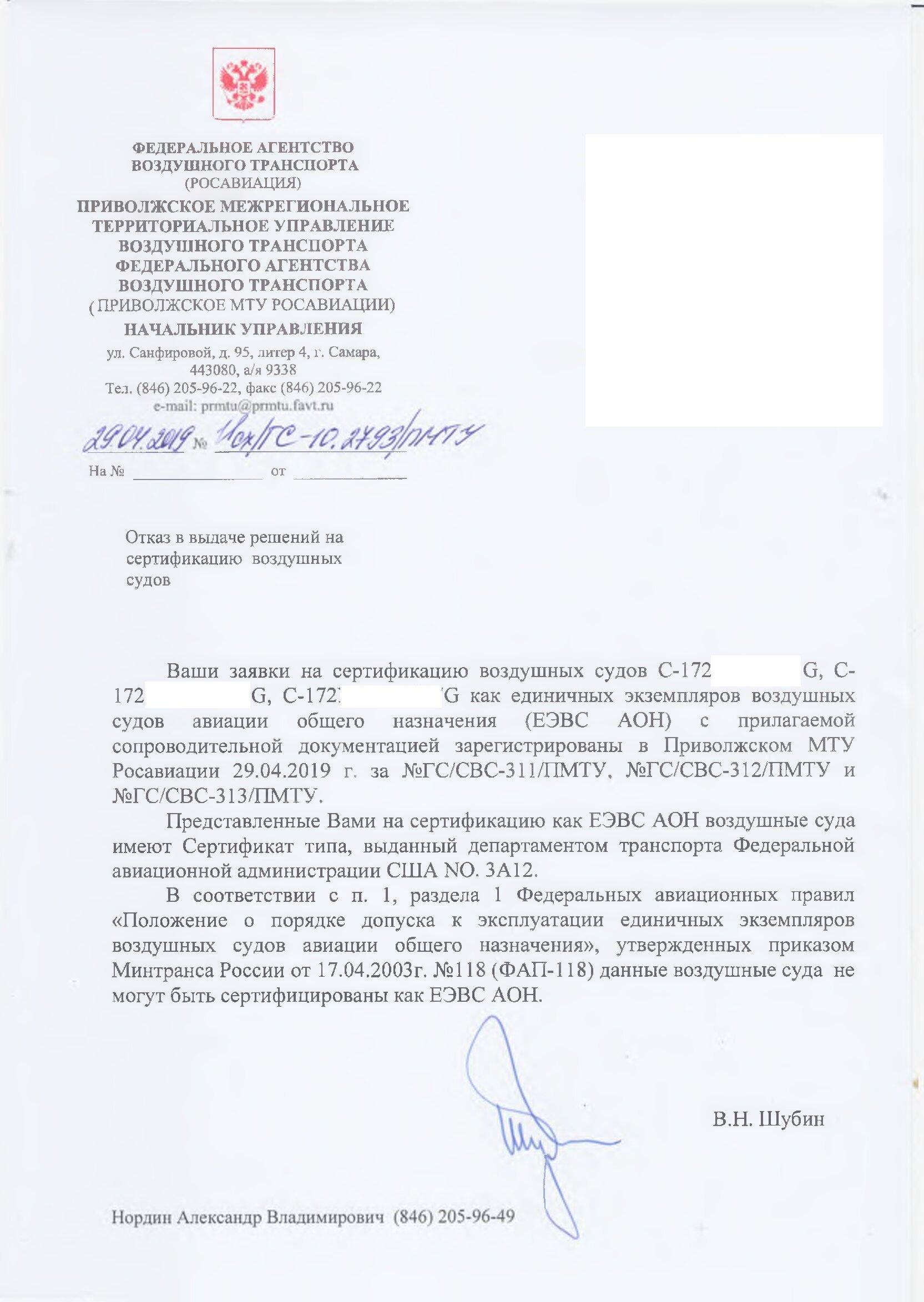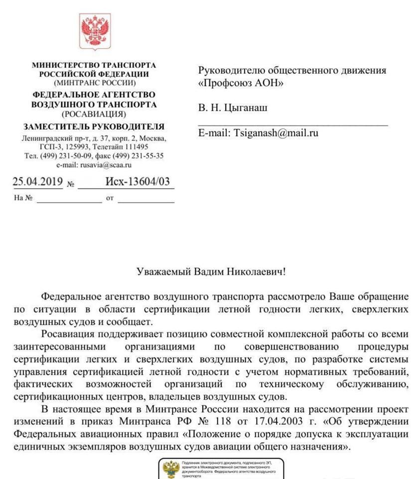 "ФАВТ РФ,в соответствии с Положением о ФАВТ, утверждённом постановлением Правительства РФ от 30.07.2004 №396 не наделено полномочиями по нормативно-правовому регулированию в сфере гражданской авиации.