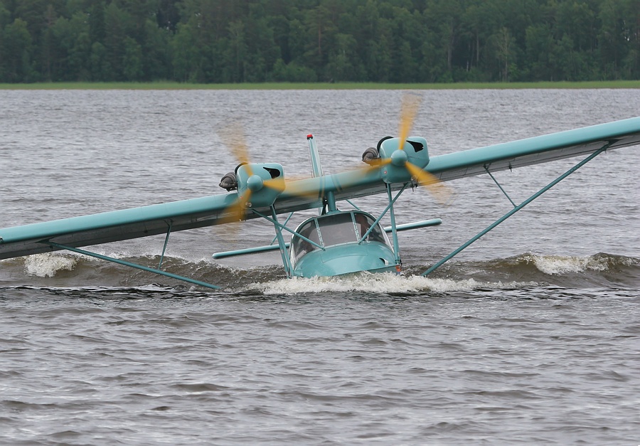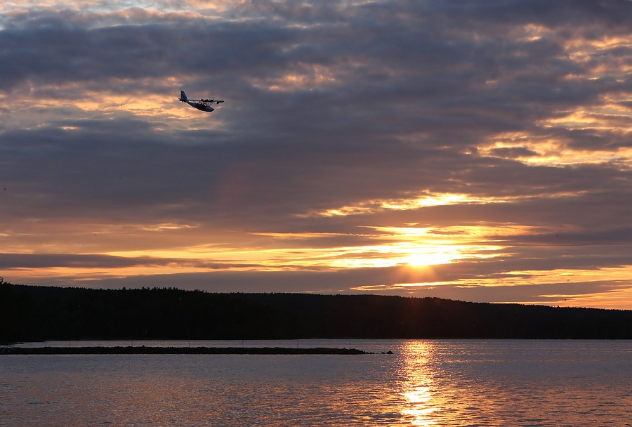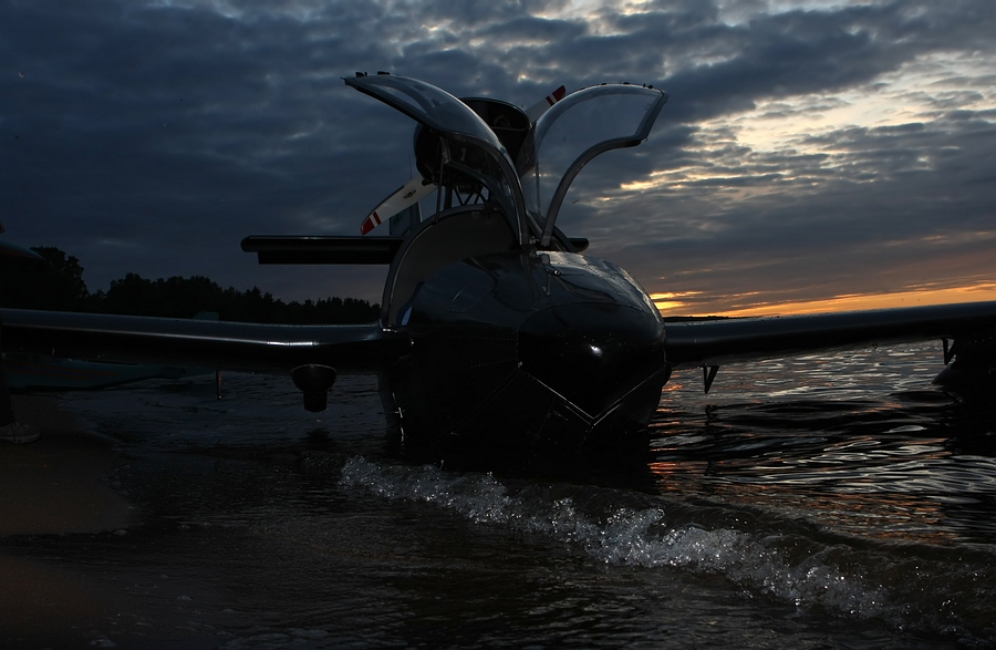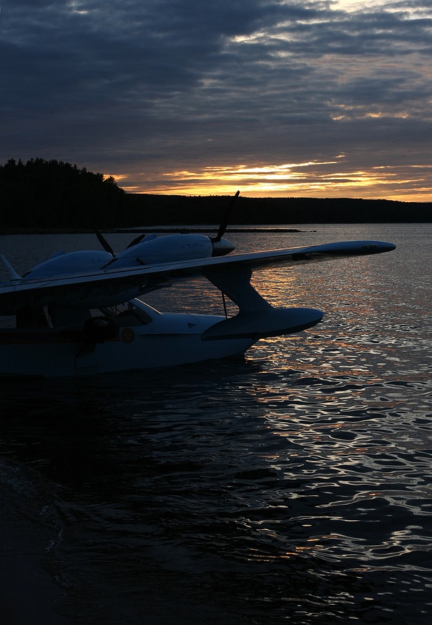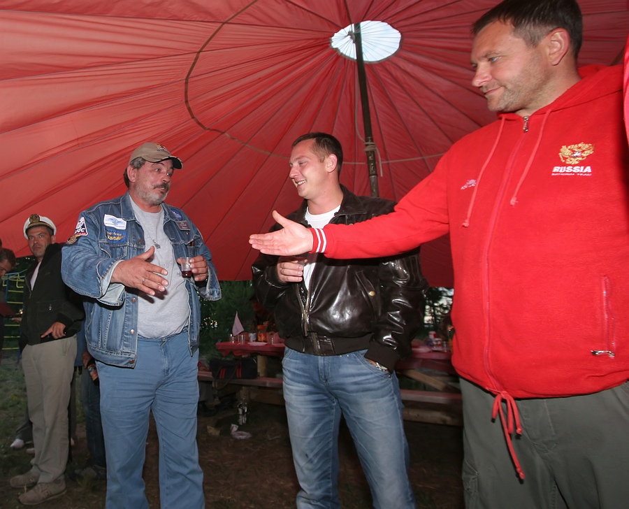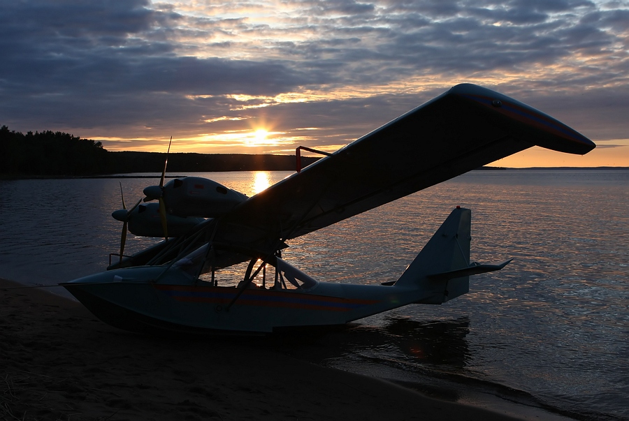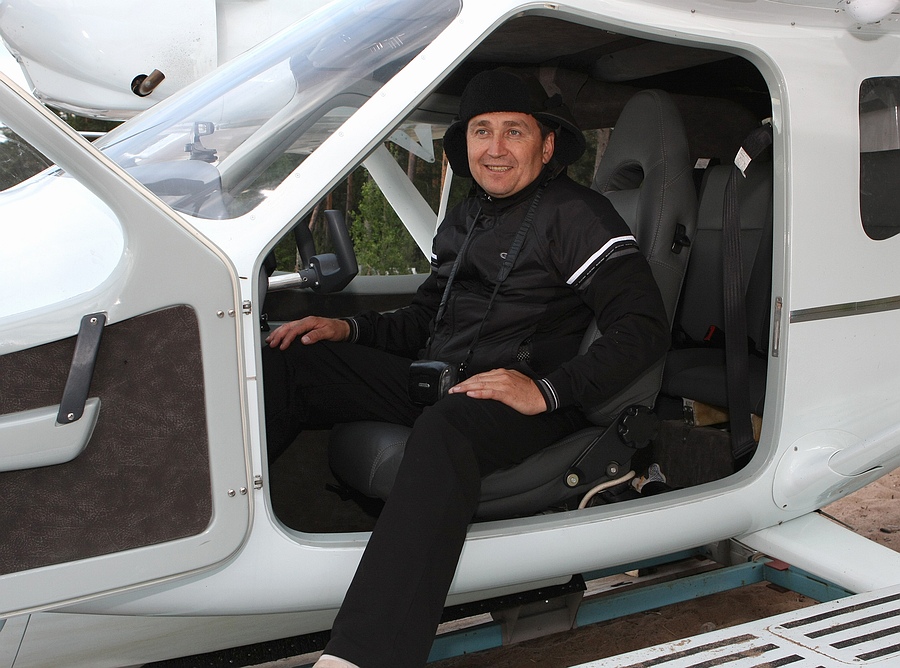 А вот и сам, - помогает вытащить аппарат на берег и фотографируется с пилотами-архангелогородцами:
