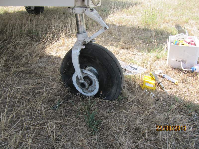 Колесо лопнуло (причем именно лопнуло...) на взлете, а точнее в самом конце разбега.