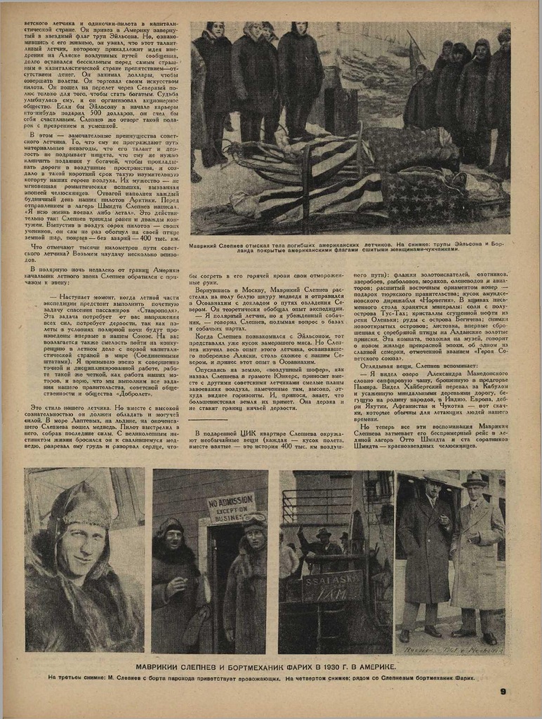 В конце зимовки авиаторы получили телеграмму с Большой земли. Им предписывалось не только спасти «Ставрополь» и «Нанук», но и разыскать американский самолет, так и не добравшийся к американской шхуне. Оказалось, бизнесмен Свенсон не хотел терпеть колоссальные убытки. Чтобы не платить в двойном размере матросам, он решил вывести их в Америку да и доставить туда же ценную пушнину, которую срочно надо было сбыть на аукционе. Для всего этого он нанял американских летчиков, среди которых оказался знаменитый полярник Бен Эйельсон, первым перелетевший через Северный полюс по трассе Аляска–Шпицберген и получивший за это переходящий приз «за исключительные полеты». Так вот, именно самолет прославленного летчика Эйельсона и его бортмеханика Борланда был обнаружен разбитым в пятидесяти милях от мыса Северного, но летчиков близ него не было.