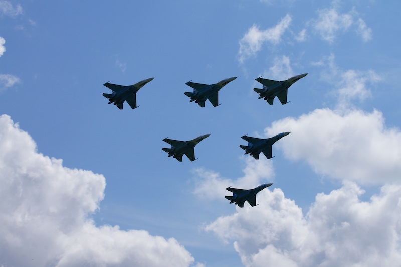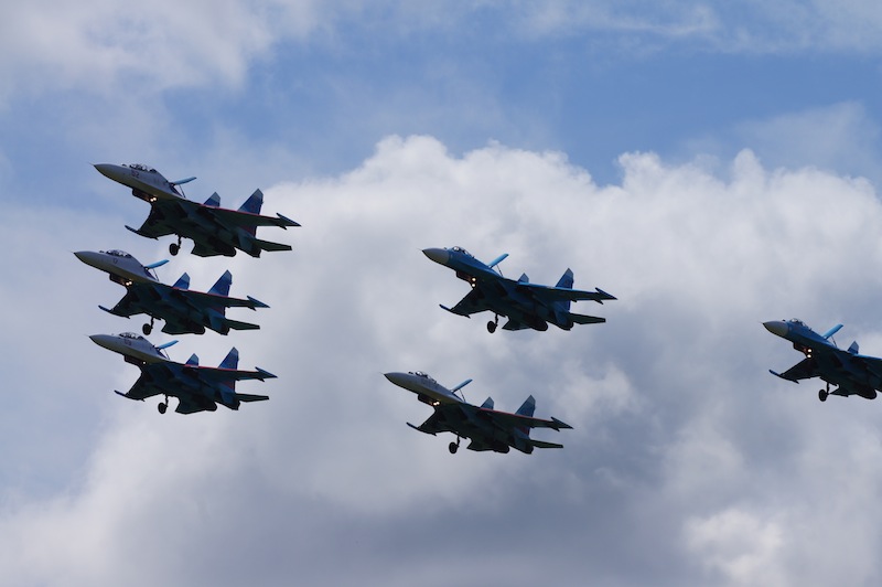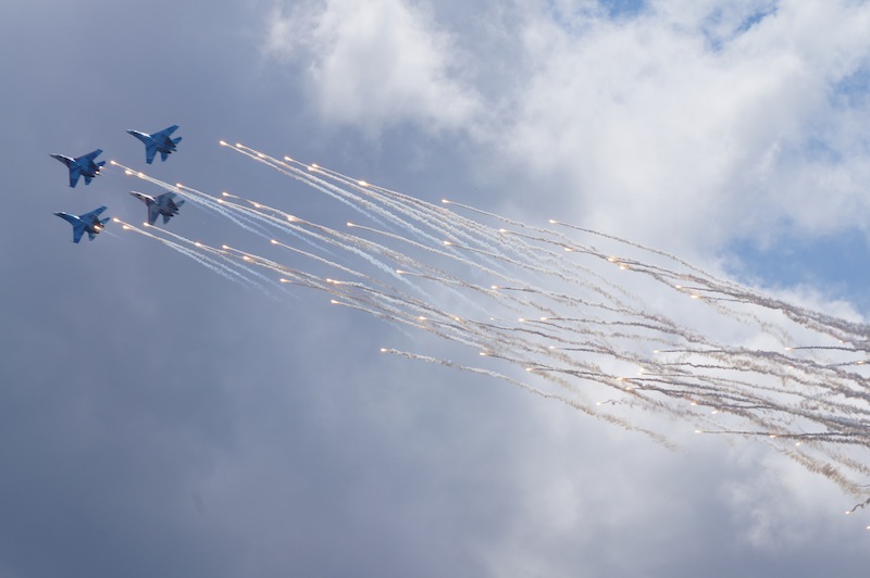 На десерт пилотажна группа су-27, 6 бортов пришло из Липецка (около 4 тыс км в одну сторону) в сопровождении ил-74, генералом и всем персоналом включая врачей команды.