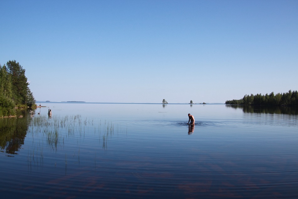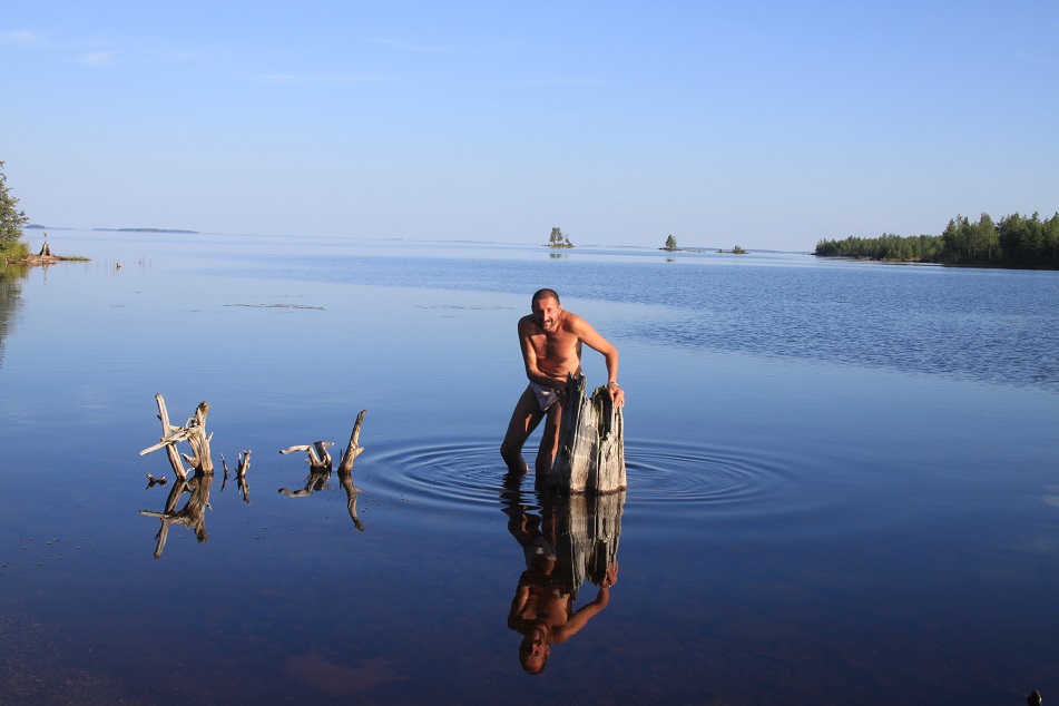 Остров - это отдельная тема. Такой красоты я не видел ни где. Мы были в сердце настоящей Карелии. Одна вещь немного омрачала наше прибывание тут - змеи. Рыбаки тоже нас предупредили. Подложка леса была покрыта ковром из ягод. Но я не мог себе позволить быть укушенным гадюкой. Андрей сразу нашёл змею. После этого известия, я с песчаного пляжа не отходил. На удивление, на острове не было комаров. А вода была градуса 22-24. Я с удовольствием искупался и постирался в чистейшей воде Выгозера.