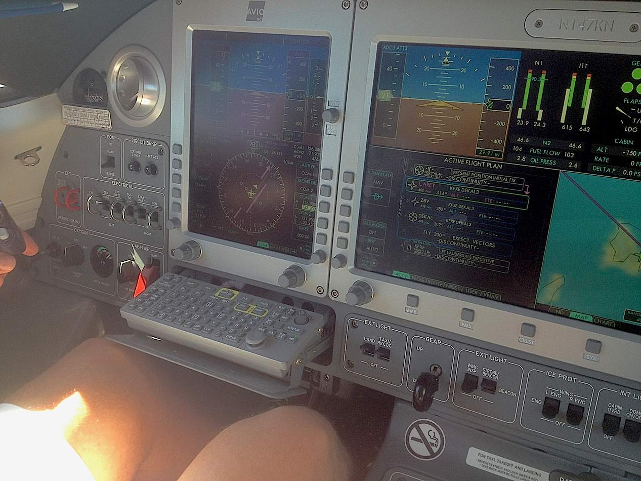 Подлетаем к Флоридскому побережью. Обратите внимание на количество аэропортов (на MFD).