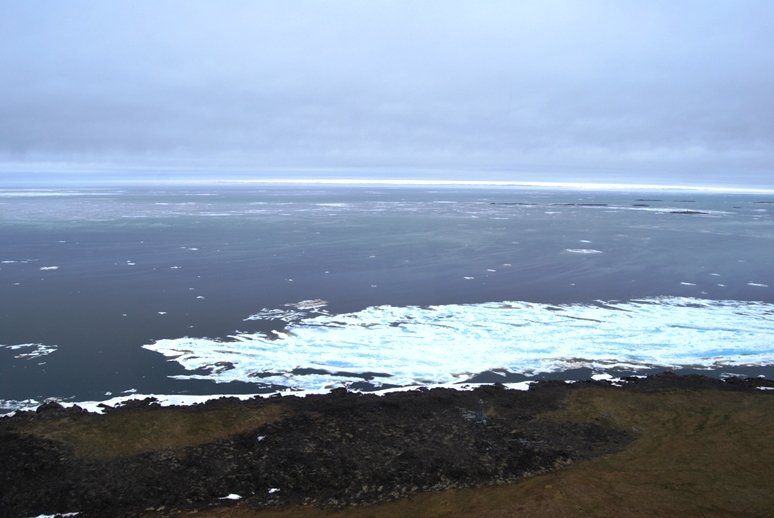 с острова в 17.00 местного взлетает МИ-8 на поселок, 2.5 км над морем до поселка, из за льдов навигация пока не началась поэтому добраться можно до поселка только по воздуху, если до этого времени мы не окажемся на острове борт уйдет и вернется только в понедельник,