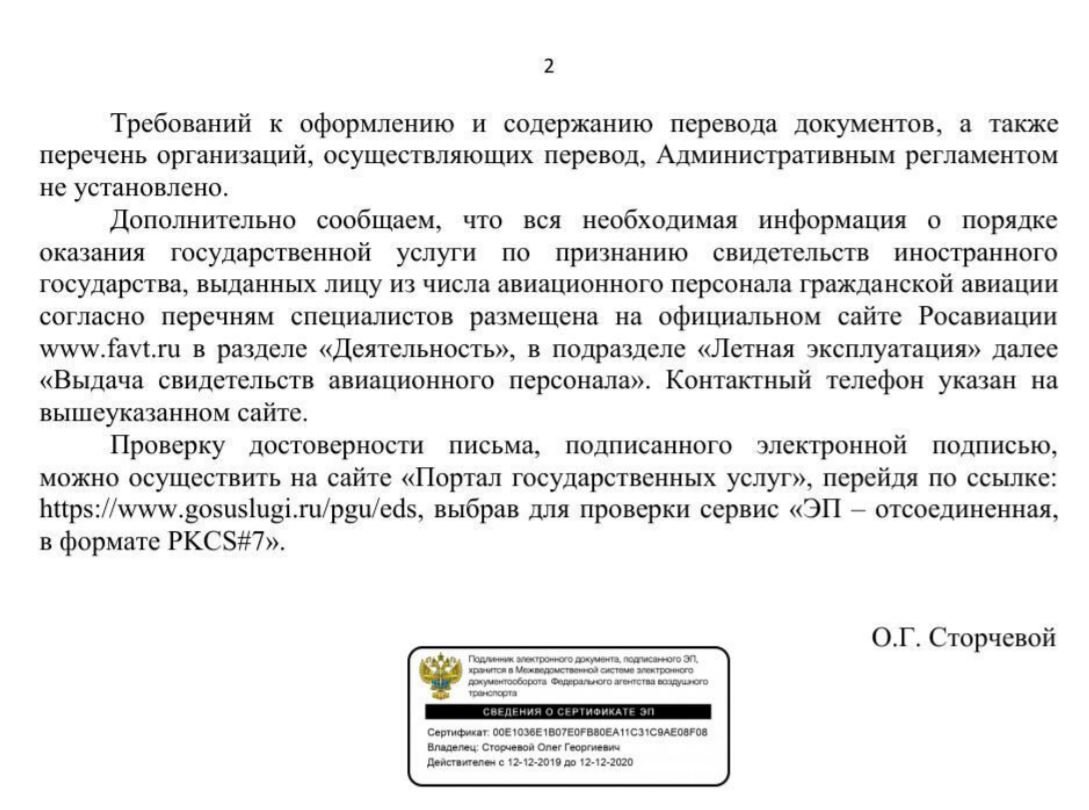 Сегодня, кстати, получил ответ из Росавиации по валидации, но в ответе про часы ничего не сказали.