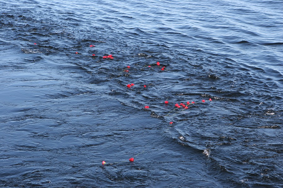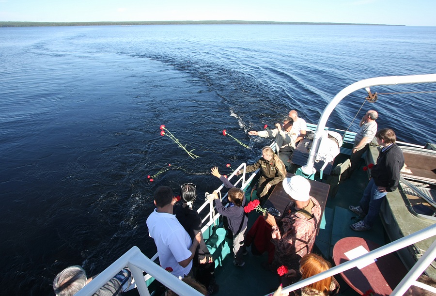 Корабль подходит к месту гибели Яна и Марины и становится в круг: