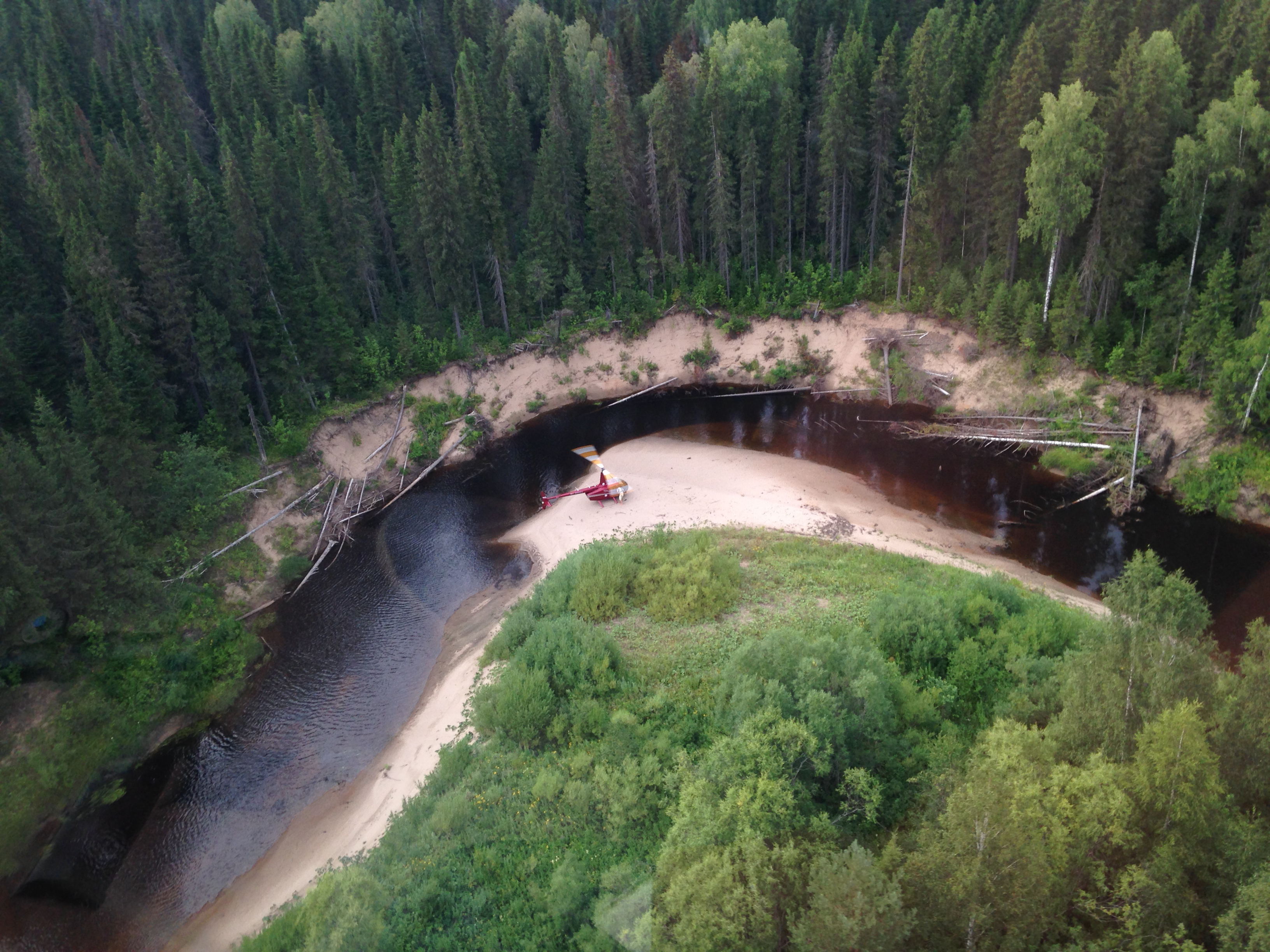 заправившись, вылетели из Нюксенице около 11:20 ... от северных пейзажей остались воспоминания и фотографии, а Центральная Россия радовала нас видами лесов и полей, деревень и поселков, заброшенных и не очень, намекая, что уже почти всё ... дабы не затягивать примерно в 13:00 подсели на речушке по названием Соть ...