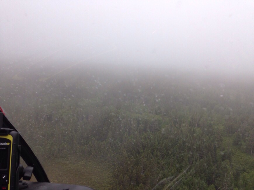 Расчет был такой: в крайнем случае, заправиться на самой восточной точке, обогнуть все это дело по берегу и зайти в Goose Bay с Востока. А по пути можно искать заходы на север, если вдруг горы приоткроются. Один раз дернулся - не впротык. Уже через 2 км лучу в облаке.
