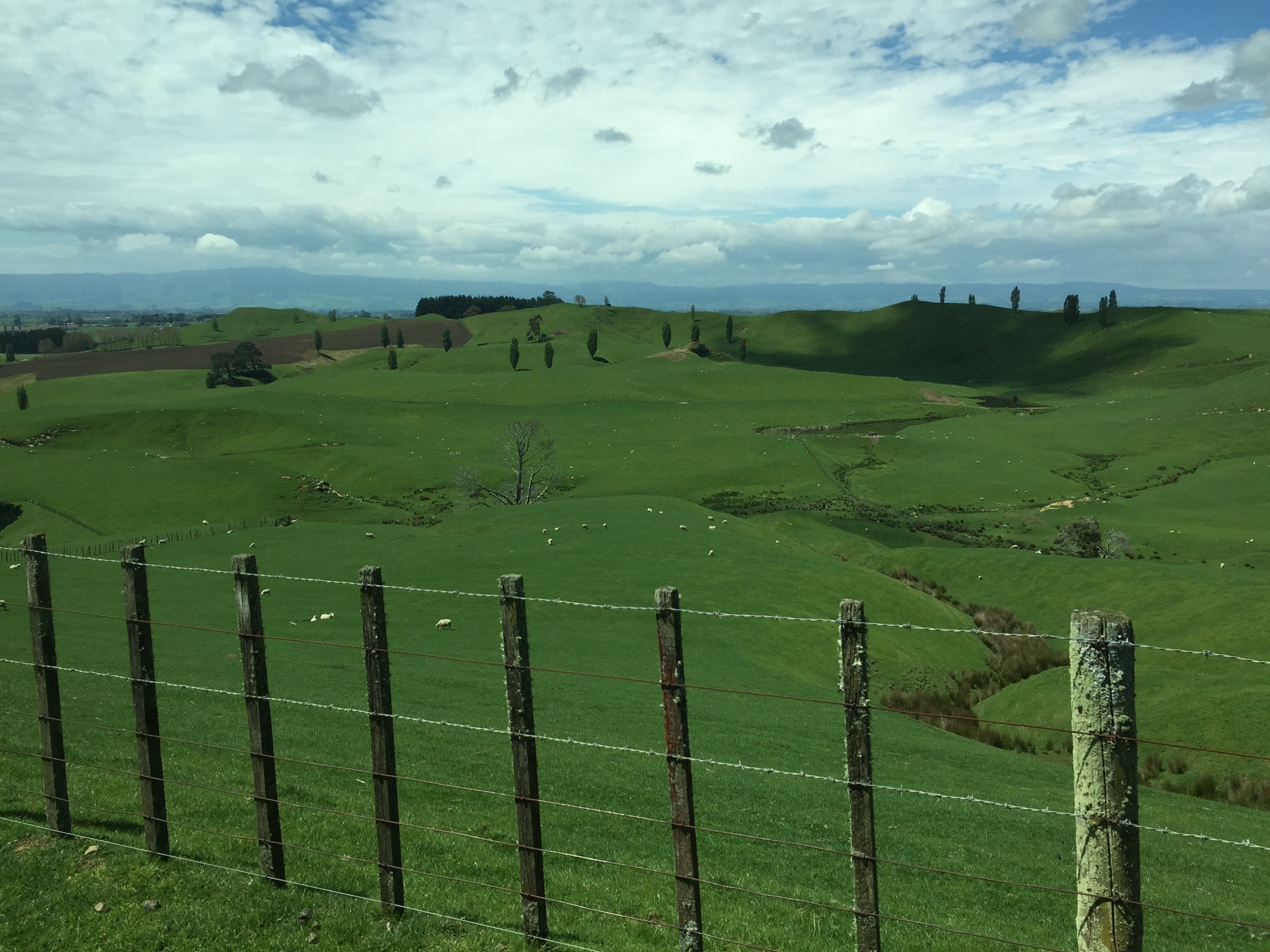 присели на зелёную лужайку рядом с кафе и парковкой ... а за заборчиком была очень стереотипичная Новая Зеландия ...