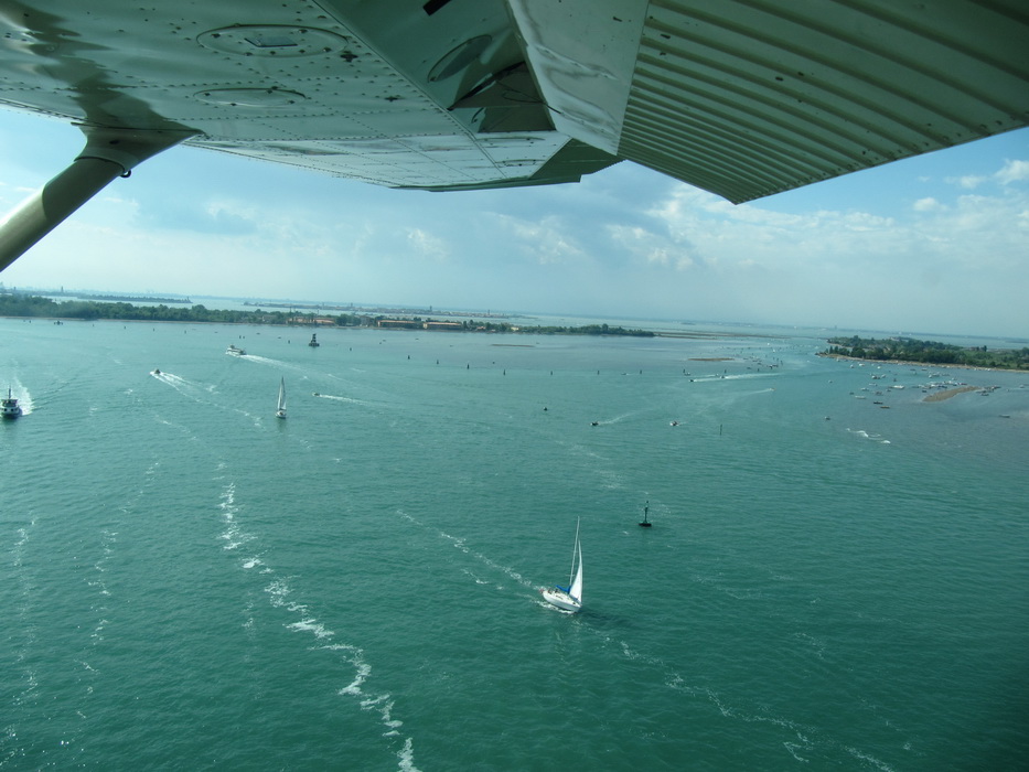 Ну так вот, заходя на посадку на аэродром Lido, пролетаешь непосредственно над водными магистралями с суетой из паромов, катеров, лодок и прочей водной аристократией .