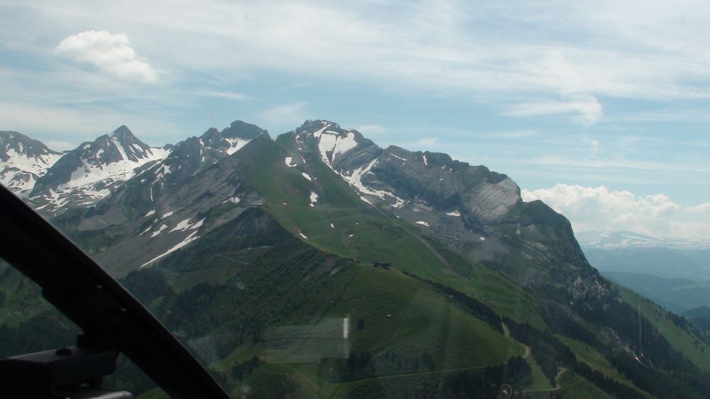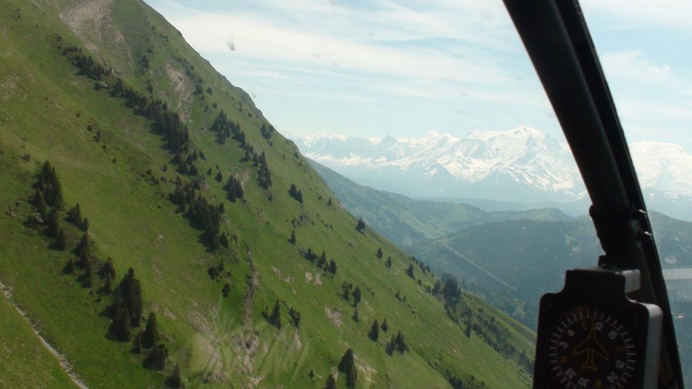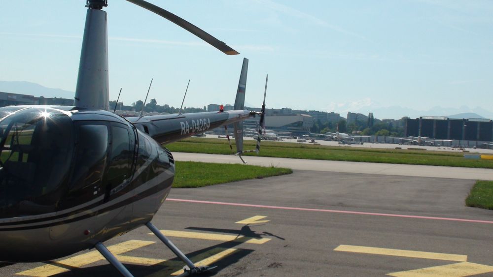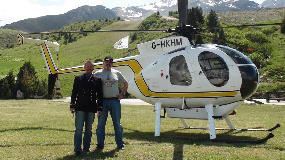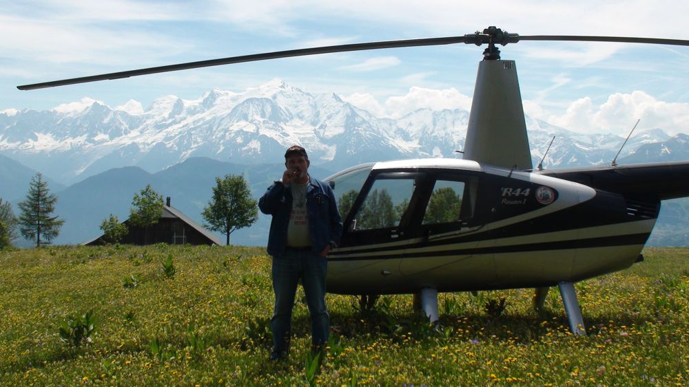 высота 9,000 футов А это мы подсели в Куршавель (если приглядеться - на флаге именно это и написано) На следующий день ко мне прилетал Сережа Чернов, мой ко-пилот на обратный путь. Мы договорились, что он прилетит в Женеву и на таксомоторе приедет в Анси - откуда мы стартанем в швейцарский Гренхен. Там был последний день Открытого чемпионата Швейцарии по вертолетному спорту - и четыре наших экипажа.