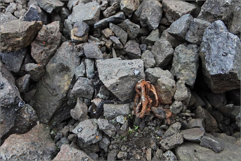 Помню, что в начале работ решил снять общий вид сверху. Карабкаюсь по сыпучему склону морены, выхожу на гребень, выбирая ракурс и… буквально спотыкаюсь о него. Даже рефлекторно оглянулся вокруг в поисках хозяина. Было ощущение, что его только что, а не столетие назад, положили на камень, человек где-то поблизости и сейчас подойдет. Нож, как компас, острием указывал на место, где между базальтовых глыб, вмороженные в лёд, лежали кости его хозяина.