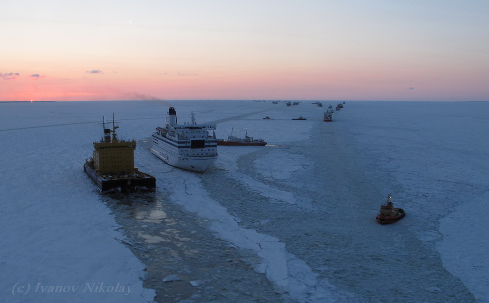 На помощь застрявшим судам идет атомоход: