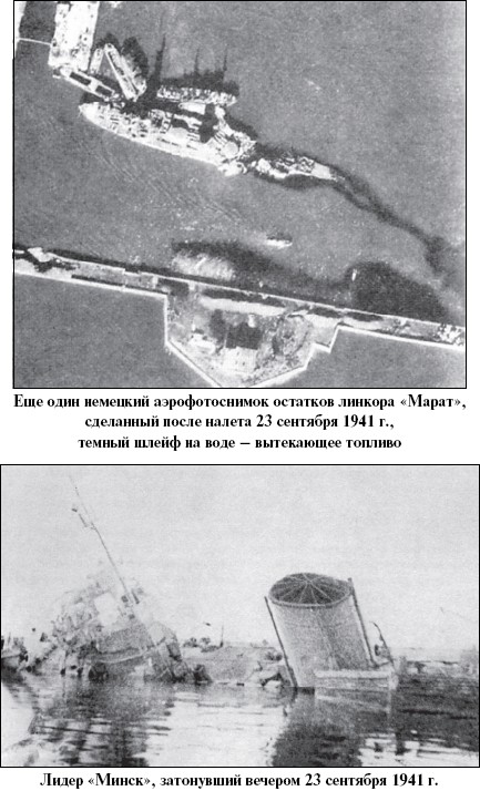 Всего в течение 23 сентября 1941 г. в ходе налетов на Кронштадт пилоты Люфтваффе потопили линкор «Марат», лидер эсминцев «Минск», подводную лодку М-74 и тральщик ТЩ-31 «Озерный» и повредили линкор «Октябрьская революция», легкий крейсер «Киров», эсминец «Грозящий», минный заградитель «Ока» и две подводные лодки (в том числе Щ-305). При бомбежке сильно пострадали цеха № 5 и № 9 Морского завода, Артиллерийский ремонтный завод и ремесленное училище.