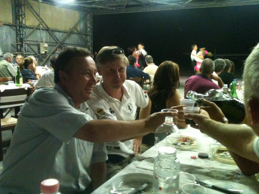 Потом предводителя вывели на общее обозрение и заставили толкать приветственную речь. Предводитель сказал что: - у нас длинные руки и если надо мы всех достанем!! Делайте взносы господа! О времени следующего заседания будет обьявленно дополнительно! После этого всех итальянцев начали принимать в РАОПА. об этом было написано в отчете у Миши . viewtopic.php?f=12&t=5355&start=30 Вот так прошел этот день. Напиться так и не удалось... Потому как из спиртного на всех была одна бутылка немировки, привезенная из Москвы вертолетчиками, остальное заливали местным вином, которое закончилось в нашем углу стола задолго до шашлыка. Пришлось собрать несколько бутылок у соседей , которые мешкались и не могли решиться- какое им открывать? Белое или красное?!