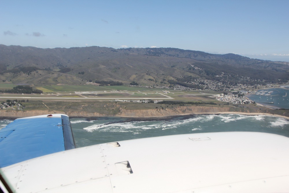 Вскоре показался Санин Half Moon Bay, надо ли говорить, что творилось в душе этого человека, когда он видел аэродром на который до этого он совершал тысячи заходов на компьютере. Надеюсь его тренировки не прошли даром. "Авианосец" приближался, поскольку он был не контролируемым мы доложили в эфир что идем на посадку с прямой и начали готовиться. Наше удаление было наверное миль 10. Подойдя поближе в эфире послышался голос 172 цессны готовящейся ко взлеты с той же полосы. Мы уже подходили к четверому и я решил повторить свои заклинания в эфир, еще раз. Еще более отчетливо я доложил, что мы уже на прямой и неприменно сядем. Цессна на исполнительном не возмутимо начала передвигаться на полосу, похоже он нас не слышал. Мы поравнялись с полосой , в тоже время как цессна вырулила на полосу и стала разгоняться, какое то мгновение мы двигались друг над другом... Совершенно стандартная нестандартная ситуация, вариантов собственно небыло, даем по газам и с правым смещением уходим на второй круг. Мне кажется тот дятел в цессне так и не понял что произошло. А произошло элементарно простое событие: