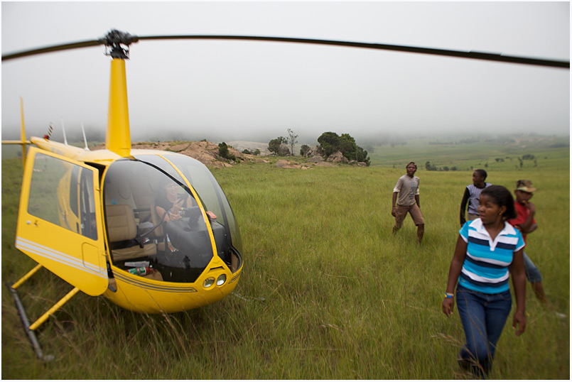 - Я хочу стать пилотом! А как это сделать? А как поступить в школу? А сколько стоит? А что нужно? А сколько платят? А почему вертолет? А это ваш? А вы пилоты? А вы муж и жена? А вы из Йоханнесбурга? А я в школе очень хорошо учусь - за 22 километра каждый день бегаю - вот и язык знаю! А...