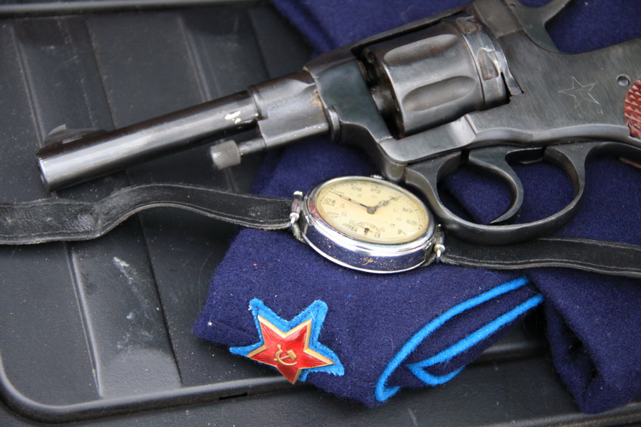 Misha, я исправил ваши замечания, воротнички подшил, часы примерно 1920г, наган 1944 (На фото можно разглядеть)