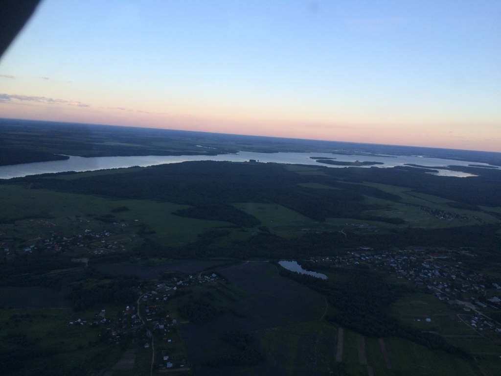 Где рядом мы ровно пол года назад шли на вертолете, сейчас наш маршрут дойдет до кирешей и уйдет на восток, на Вологду. Через 100 км заработала станция, нас слышат, ну славо тебе, а жизнь то налаживаешься. Дима потихоньку остывает его отпускает адреналин пошли вопросы относительно а как мы будем садиться как лететь еще и какую лучше высоту набрать что б не колбасило а то он малость приустал в ручную бороться со стихией! Лети давай! Сам напросился! А под крылом самолета ленинградская область, болота речки, деревни, города. Красота! Беру в руки расчет считаю ага точно планшет врет на час вперед, так теперь вспоминаем и где у меня записано заход солнца в Вологде ? Так так а мы припремся под заход если не сказать большего под ночь!!! Сижу считаю сколько это под ночь у нас будет запаса, вроде есть минут 40. Потихоньку со скоростью 200 км где меньше приближаемся к Вологде, тени на земле становятся длиннее, солнце постепенно опускается к горизонту, мы идем на восток. Вот рубеж Вологды считаемся говорю что бес попутал будем позже, на том конце одобряюще понимают и просят обойти череповец включаю тумблер, не понял чего надоть то? Вы можете. Обойти череповец? А зачем? Так иди прямо работай с череповец частота такая! На частоте сперва не понимаю чего но оживленно, народ крутит круги и при этом сразу борта три не меньше, так а самого диспетчера мы не слышим только слышим доклады третьего, четвертого разворотов и доклад о взлете. Пытаюсь в паузу дать сеанс связи, происходит худшее борта на кругу замолкают землю мы не слышим и передать что мы хотим нам не помогают, мда ! Ну и ладно летим напрямую, борты ходят над точкой в радиусе 5 км они нам не помеха. Опа в эфире появляется еще голос ' женский' увереный, так вот это наверное и есть череповец старт, але девушка мы тут у вас того этого летим вроде как! Опять тишина и хрен поймешь чего ждать, это кто тут летит? Кто то, мы!!! Летим и уже давно почти два часа, а вы не хотите об этом даже поговорить. Ой мальчики простите замечталось, давайте дуйте дальше выход доложите. Ну если только мальчики и летите то конечно доложим. Через 15 минут прощаемся, за это время наслушавшись ради обмена курсантов и земли поржали, "670 третий триста ,заход""поняла"670 третий триста заход""поняла"" 670 третий триста выполняю" " вы че издеваетесь там, поняла я"
