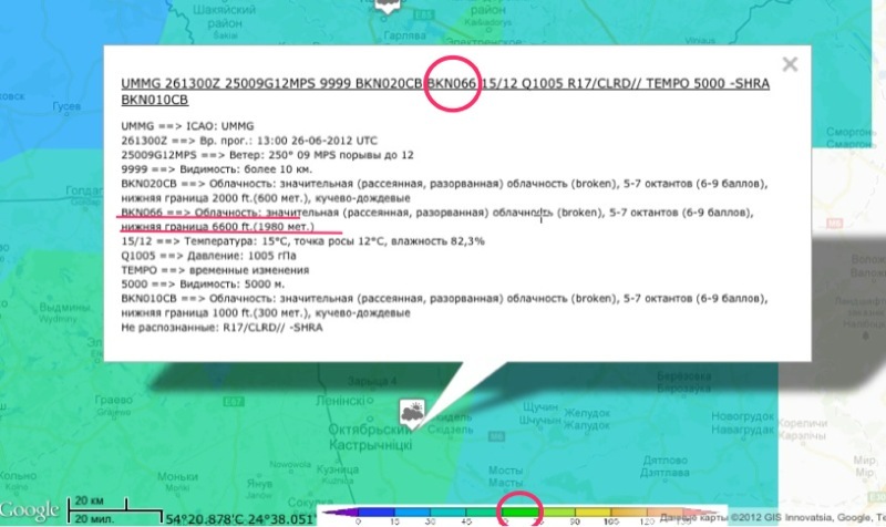 Расшифровка METAR и TAF - нажмите [+] - зеленый овал