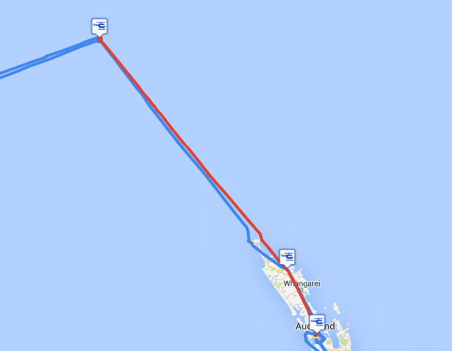 2. побережье на Cape Reinga (04:21Z) -> Bay of Islands [Kerikeri] Airport, NZKK (05:25Z)