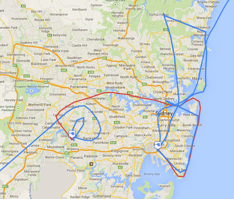1. Sydney Airport, YSSY (00:16Z) -> Bankstown Airport, YSBK (00:42Z)