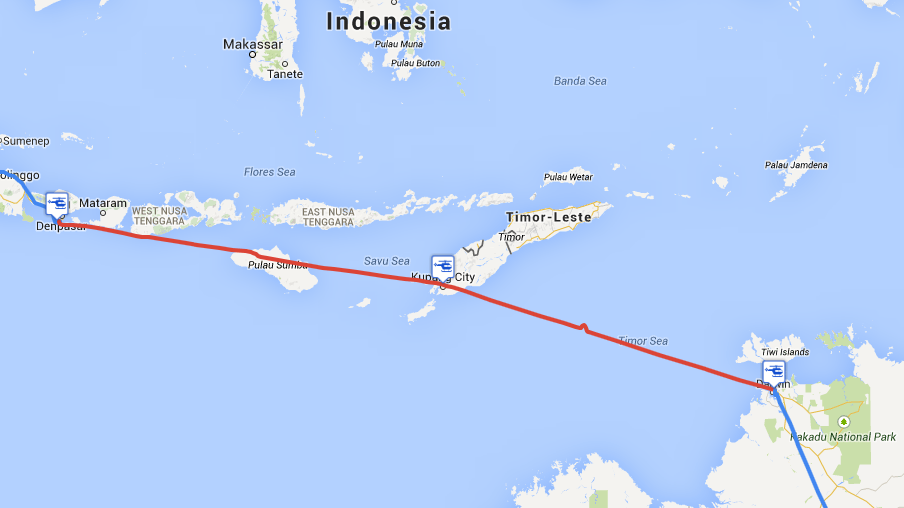 1. Darwin Airport, YPDN (23:41Z) -> ИНДОНЕЗИЯ -> El Tari Airport, WATT (04:02Z)