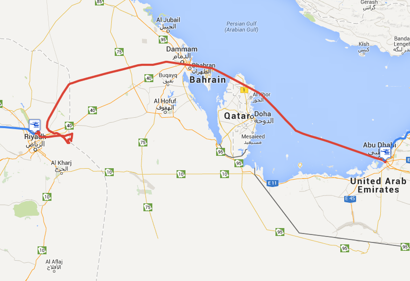 1. Al Bateen Executive Airport, OMAD (08:53Z) -> КАТАР -> БАХРЕЙН -> САУДОВСКАЯ АРАВИЯ -> King Khalid Airport, OERK (14:34Z)