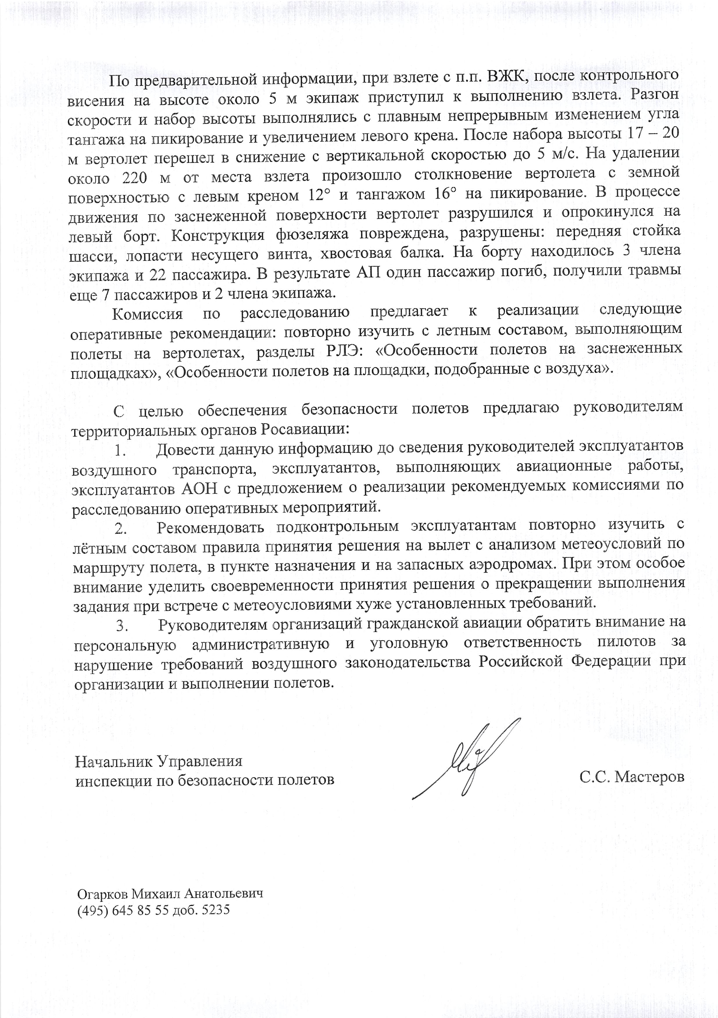 По результатам расследования разработаны рекомендации по повышению безопасности полетов.