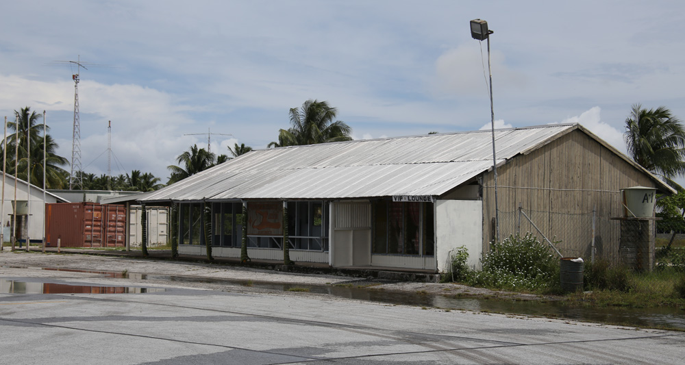 После заруливания на стоянку к нам подошел сотрудник аэропорта, который показал пальцем, куда нам всем нужно идти, на этом его участие в процессе закончилось. Мы попытались попросить у него колодки для самолета, но оказалось что они есть в единственном комплекте и полагаются только для рейсового самолета. Пришлось сбегать к ближайшей кокосовой пальме, и с помощью аварийного топора изготовить из орехов какое-то подобие колодок. Впрочем, на них решили особо не надеяться, поэтому пришлось оставить самолет на стояночном тормозе, на пару дней должно было хватить давления в гидроаккумуляторах.