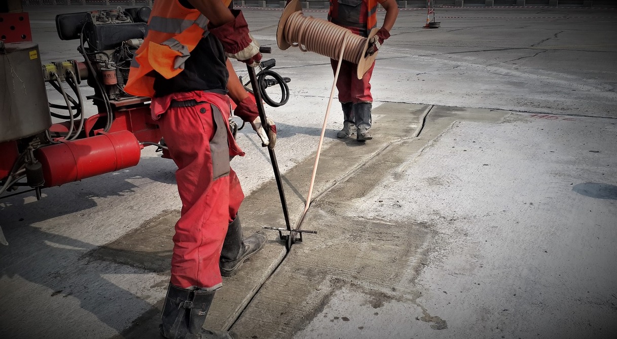 p.s. На фото текущий объект в Ростове. Надежные подрядчики из Белоруссии выполняют ремонт бетонных РД.