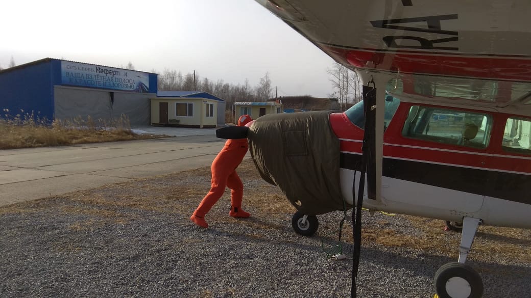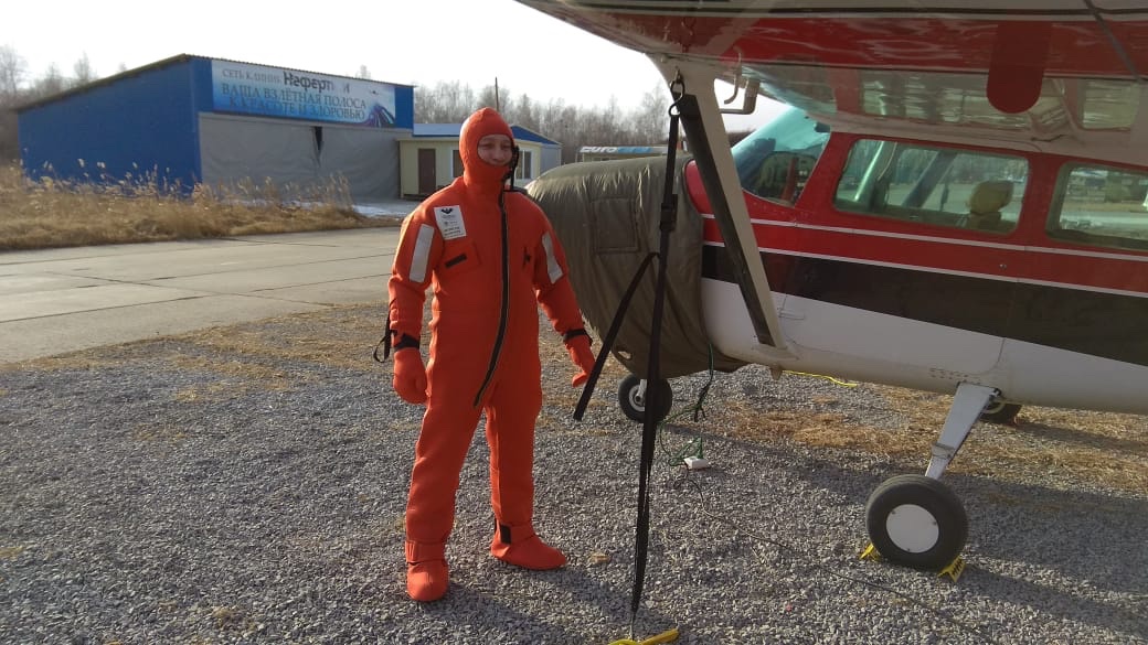 Всякого барахла набралось с собой много. Так как зимние полеты подразумевают подогрев, чехлы ,удлинители , инструмент, продукты на всякий случай ,одежда зимняя , сменная на двоих и ещё много всяких мелочей. Два гидрокостюма со спас жилетами. Спасательные лодки одноместные ждали меня в Хабаровске. Вообщем с учетом доп бака салон был забит на 80%.