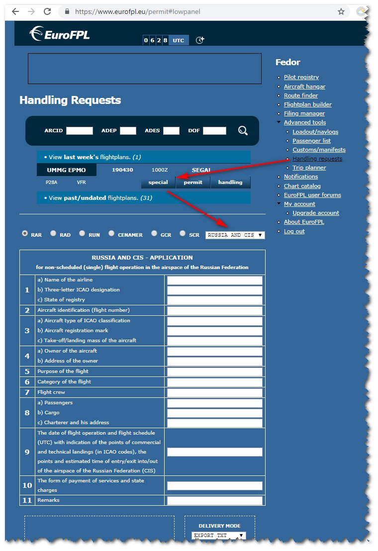 Немцы с eurofpl.eu добавили возможность отправки российской Формы Н и белорусской Формы 2 по AFTN из личного кабинета.