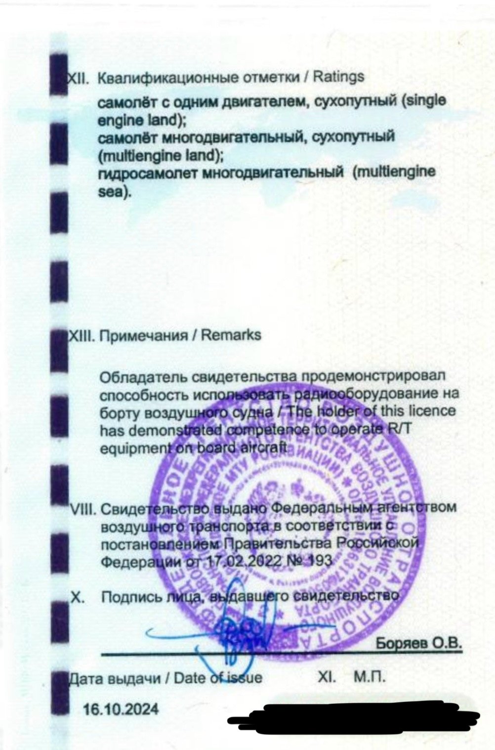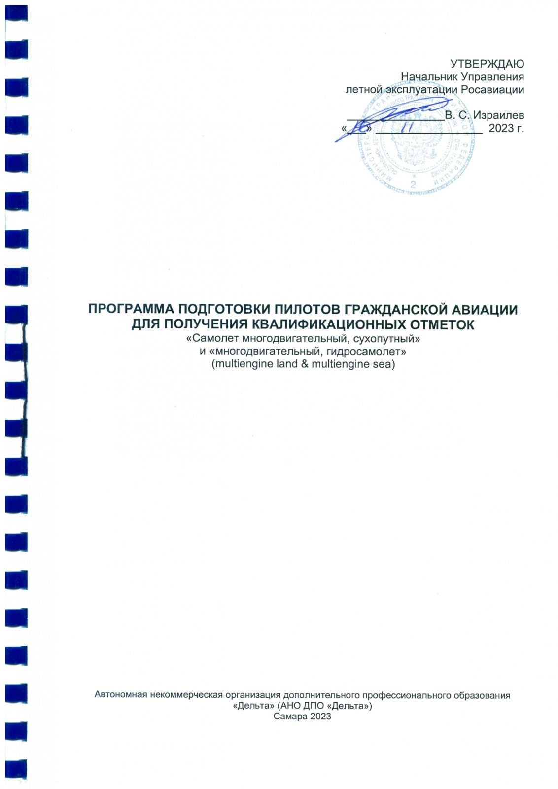 Программа подготовки пилотов гражданской авиации для получения квалификационных отметок «Самолёт многодвигательный, сухопутный (multiengine land)» и «Многодвигательный, гидросамолет (multiengine sea)».